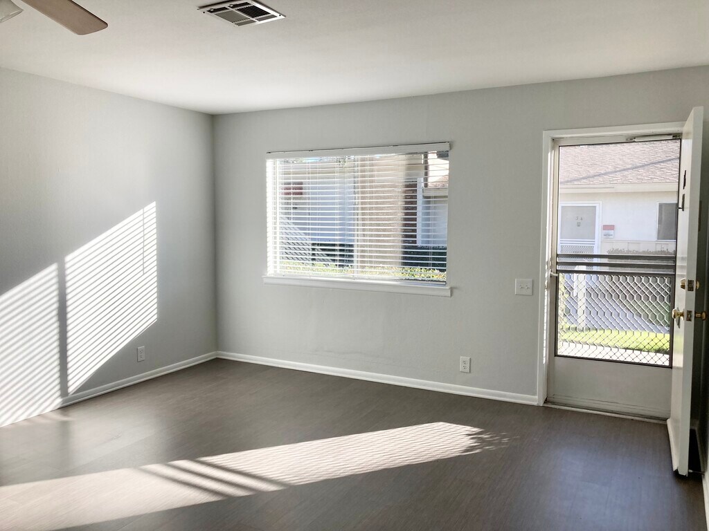 We feature spacious 2 bedroom, 2 bath single story apartments. With no neighbors above or below you and over 1,100 sq ft of living space, you will find plenty of room to relax. Enjoy our large open kitchen with enough room for a table in the nook. Step through the sliding glass door and you'll enter a large private yard/patio. The kitchen pass through overlooks the dining and family rooms. Two large bedrooms and two full baths along with plenty of linen and storage closet/cabinets complete this floorplan. The community features tropical plants and palms as well as a large relaxing pool. Within the serene garden areas you'll find a brand new laundry area as well as a large recreation room. Call or stop by to see it all for yourself at Catalina Gardens.