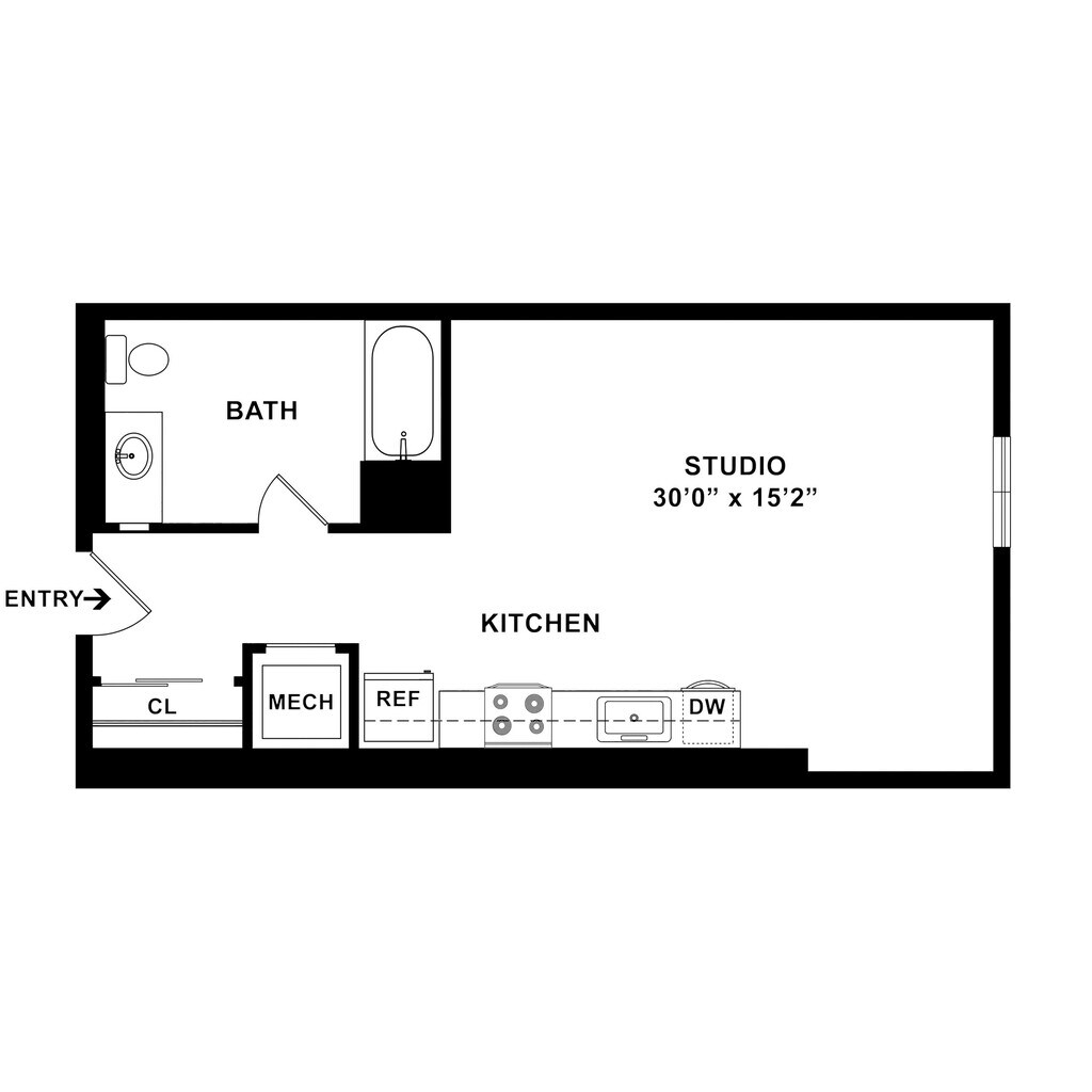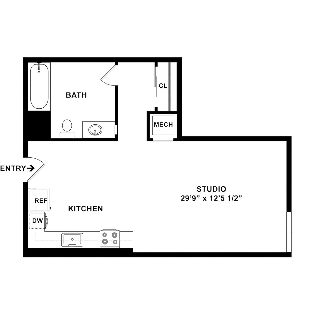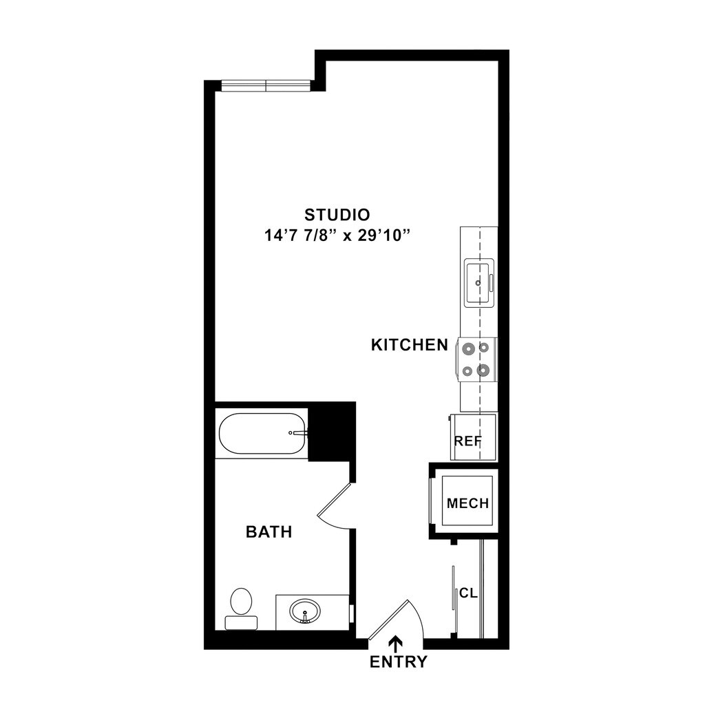 Studio, 1 Bath, 504 sq ftAvailable NowModel Gallery