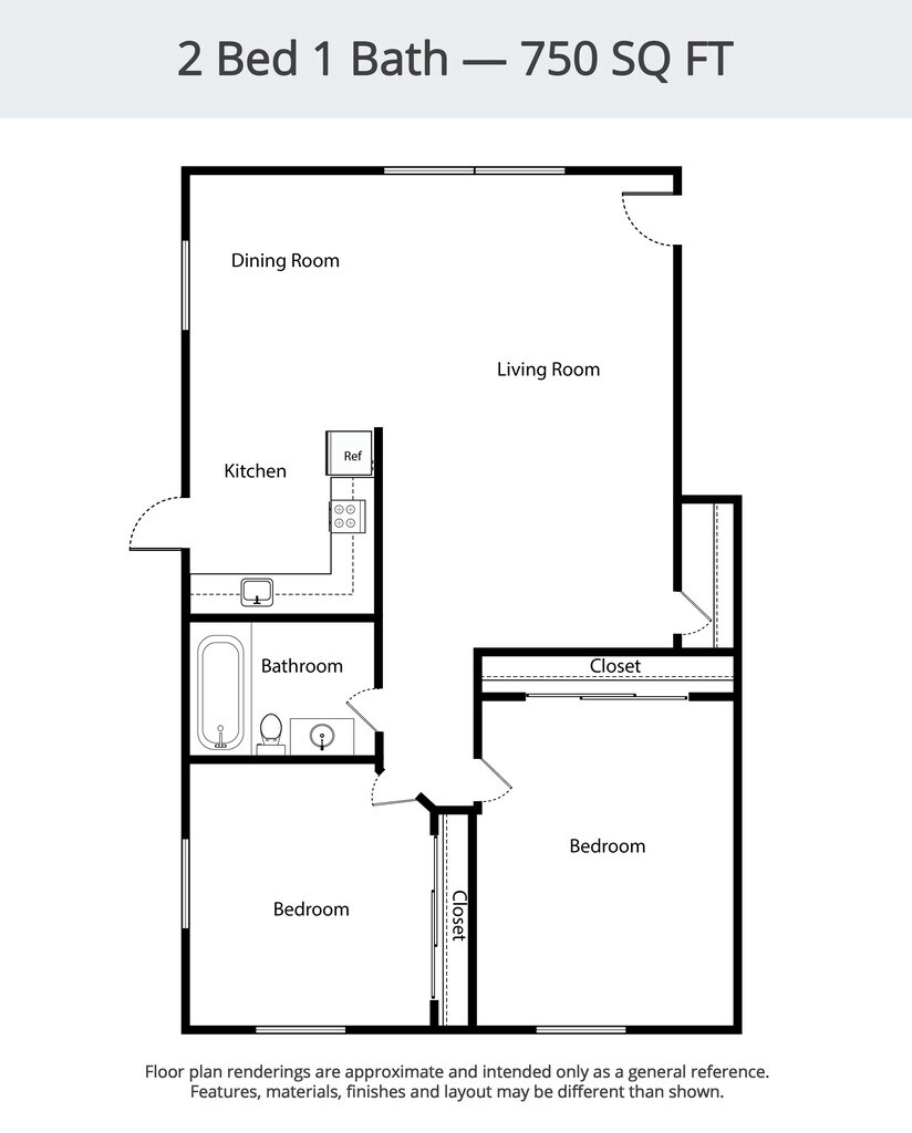 2 Beds, 1 Bath, 750 sq ftModel Gallery