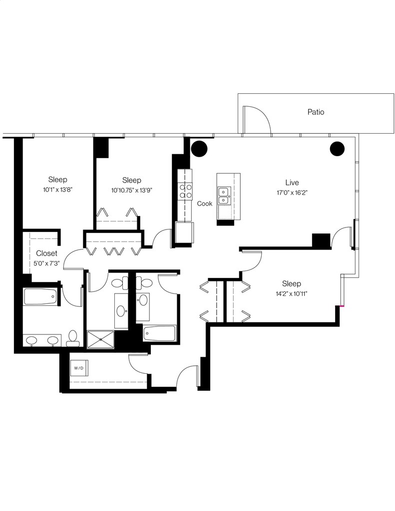 Apartment Model: 1 Bed/1 BathFrom $2,9331 Bedroom, 1 Bath, 842 sq ftAvailable NowFloor plans are artist's rendering. All dimensions are approximate. Actual product and specifications may vary in dimension or detail. Not all features are available in every rental home. Prices and availability are subject to change. Base rent is based on monthly frequency. Additional fees may apply, such as but not limited to package delivery, trash, water, amenities, etc. Deposits vary. Please see a representative for details.