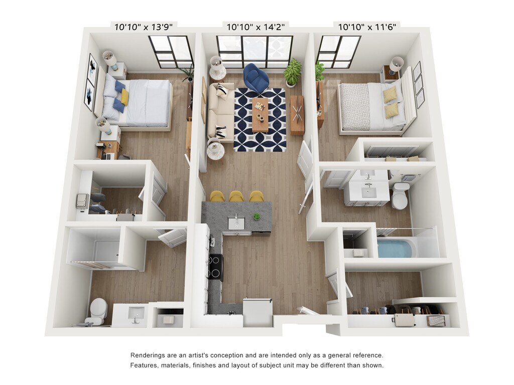2 Beds, 2 Baths, 1109 sq ftAvailable NowAvailability Details