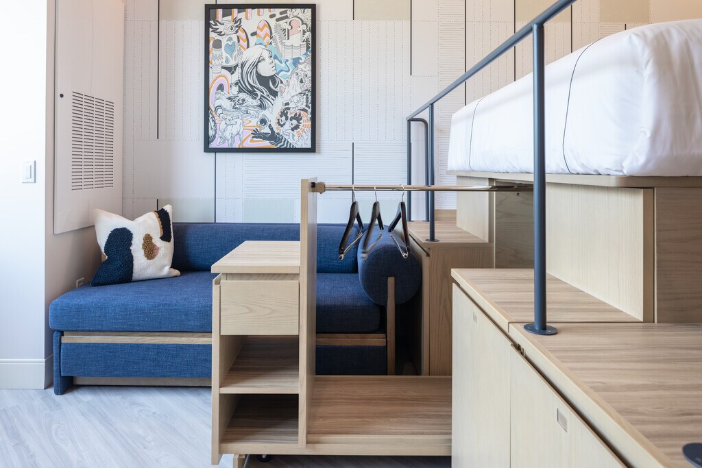 Catbird is an independent hotel in RiNo that blurs the line between hotel and home, featuring rooms that are comfortable for those longer stays! In Denver’s most exciting neighborhood, Catbird's creative lobby allows workflow and life balance to come together. With comfortable spaces, easy grab-and-go food options and a rooftop patio worth seeking out, this hotel creates all the feelings that travel should provoke. So much more than just a place to stay. Guest rooms emphasize housewares, flexible storage, and multi-functional furniture - the comforts that people experience in homes, brought into a hotel. Everything has a purpose and then more: functional kitchens feature two-top burners, microwave / oven combination unit, sinks, dishwashers, refrigerators, and cooking supplies to help whip up your favorite meal. We charge $100 per month for your Long Stay Amenity Fee. This covers access and replenishment of all usable amenities in your unit, access to the fitness center, playroom, laundry facilities, water stations, and more.