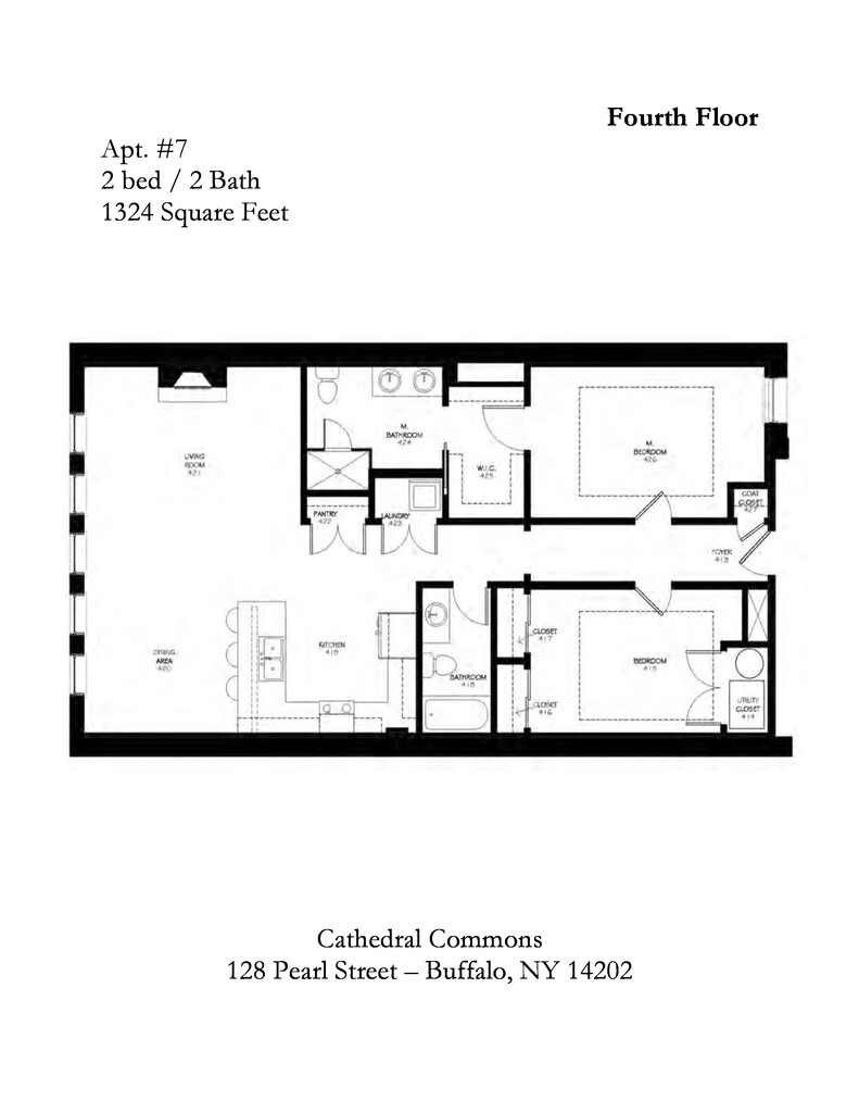 Located in the heart of downtown Buffalo, Cathedral Commons, The Apartments at St. Paul's, offers spacious Lofts with gorgeous finishes in a historic and perfectly located building. Apartments boast in unit washer/dryers, granite counter tops, engineered hard wood floors, stainless steel appliances, walk in closets, high ceilings, and parking. Certain apartments even offer fireplaces and historic leaded glass windows. ***Currently not accepting pets*** The building is located in walking distance to Canalside, Sahlen Park, two NFTA Metro Rail stations on Main Street, the bus station and local restaurants. It's a short driving distance to the 190 thruway, the 33 expressway, KeyBank Center, seats of government and the post office.