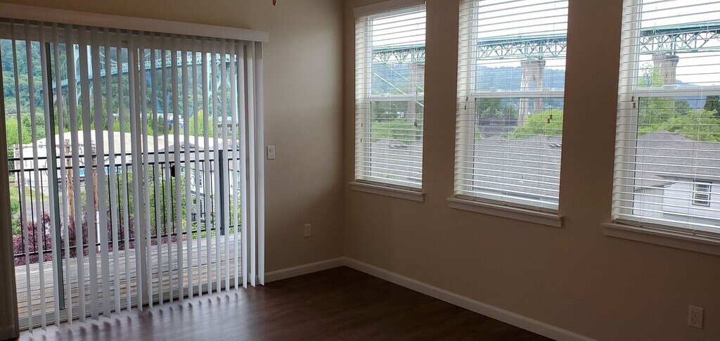 Fantastic views from this one bedroom, one bath apartment! Enjoy the bridge and Forest Park from your balcony! Includes washer/dryer, dishwasher, disposal, microwave, self cleaning oven, wide plank flooring and carpeted bedroom.