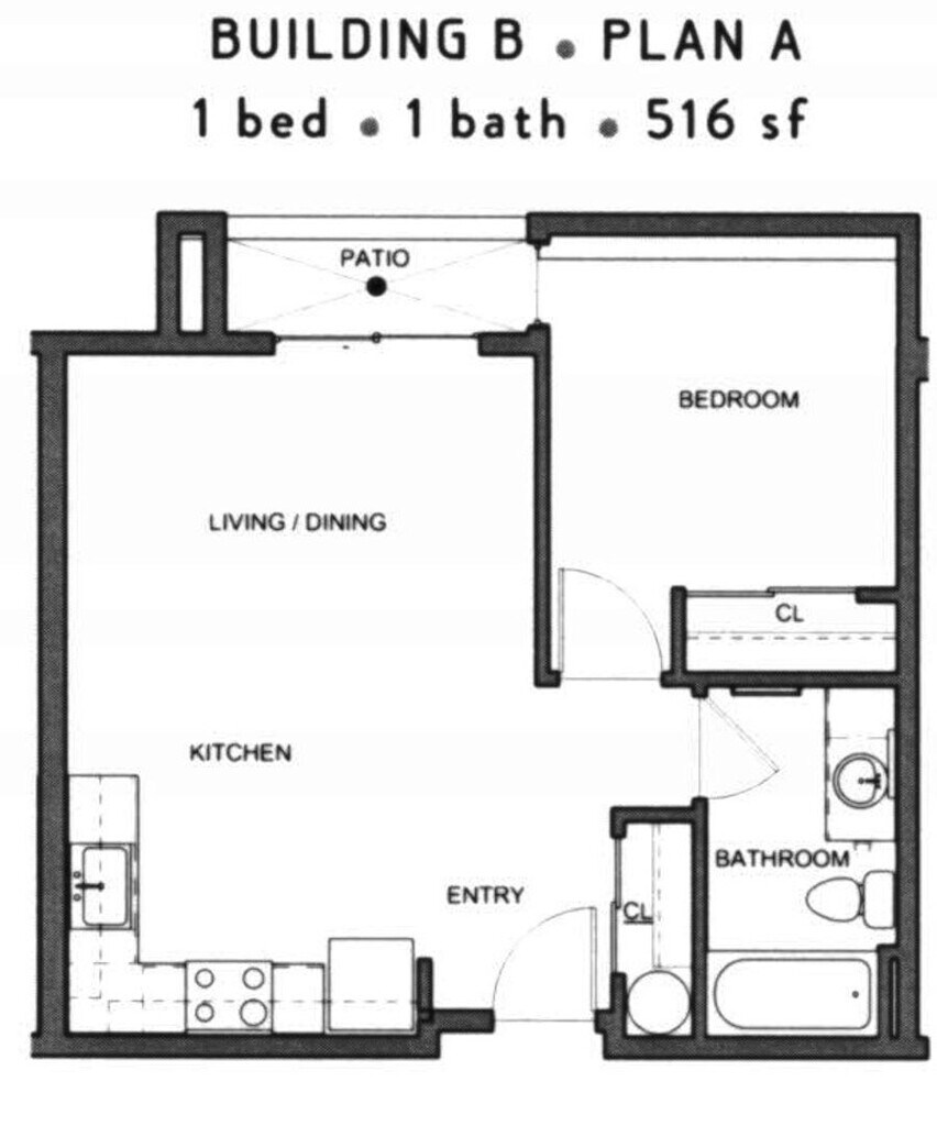 1 bedroom, 1 bath 516 sqft - Image 9 Apartment Unit: 3-114Apartment Model: 1 bedroom, 1 bath 516 sqft1 Bedroom, 1 Bath, 516 sq ftAvailable Now1 bedroom, 1 bath 525 sqft