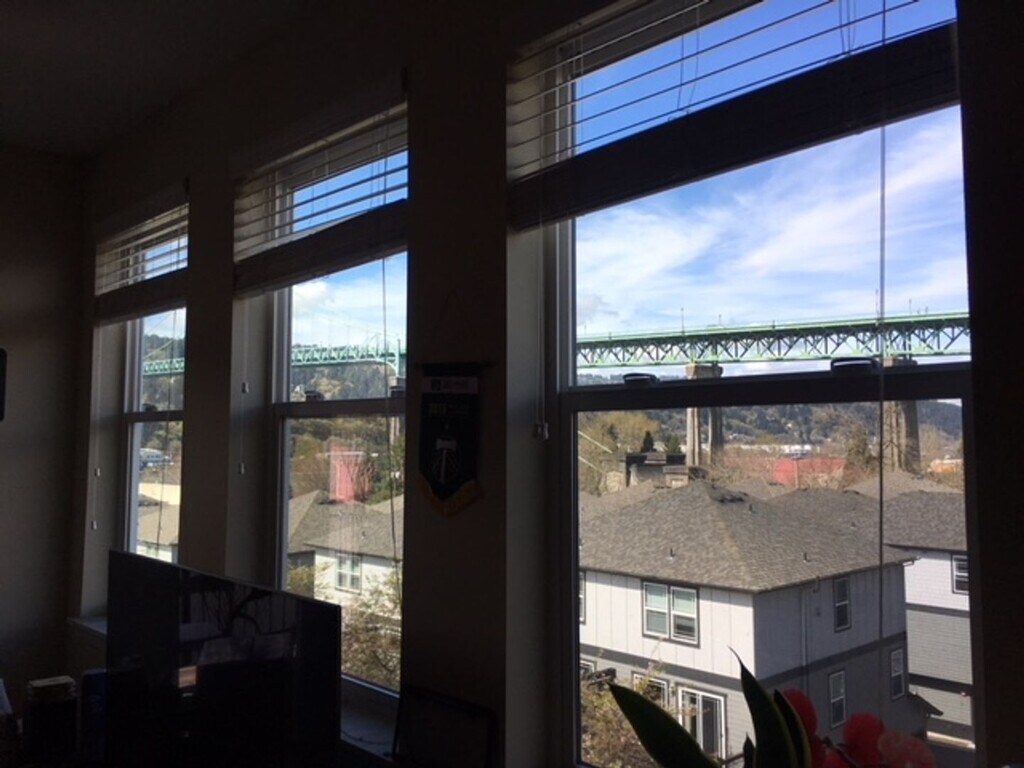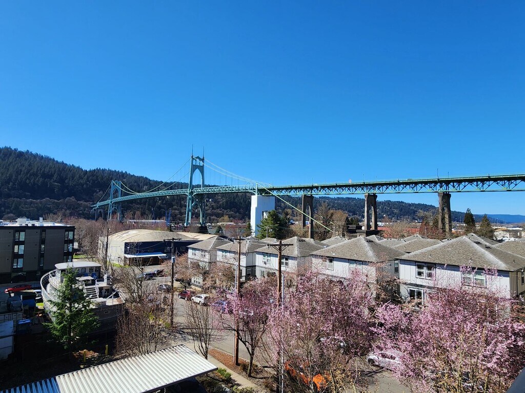 This corner one bedroom has an entry hall, 3 large windows in the great room, deck and exceptional St Johns Bridge views.