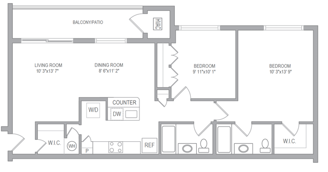 2BR/2BA - Floorplan 9 2BR/2BA Den