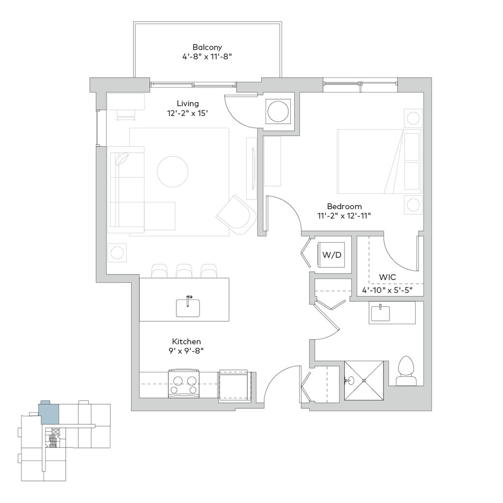 1 Bed, 1 Bath, 685 sq ftModel Gallery
