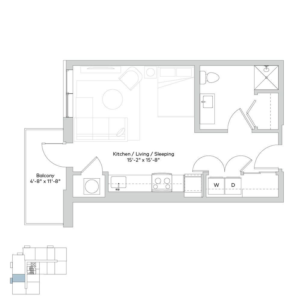 Apartment Model: ATSE_0b1abStudio, 1 Bath, 447 sq ftAvailable NowATSE_0b1ab - Floorplan 1 Apartment Unit: 505Apartment Model: ATSE_0b1abStudio, 1 Bath, 447 sq ftAvailable Now1 Bedroom