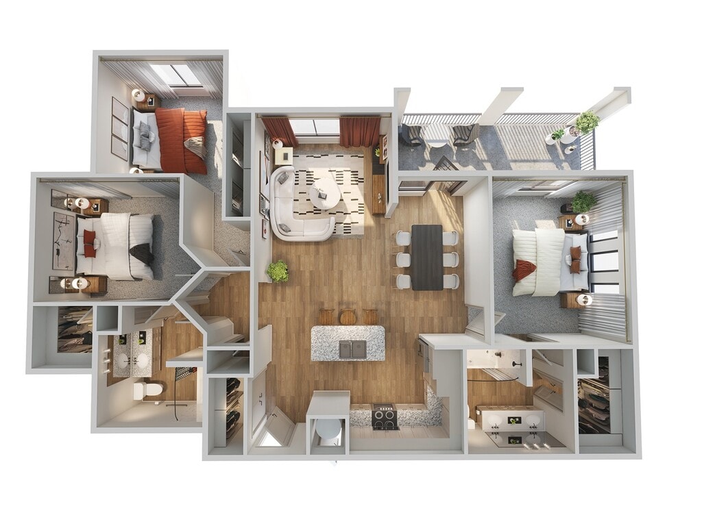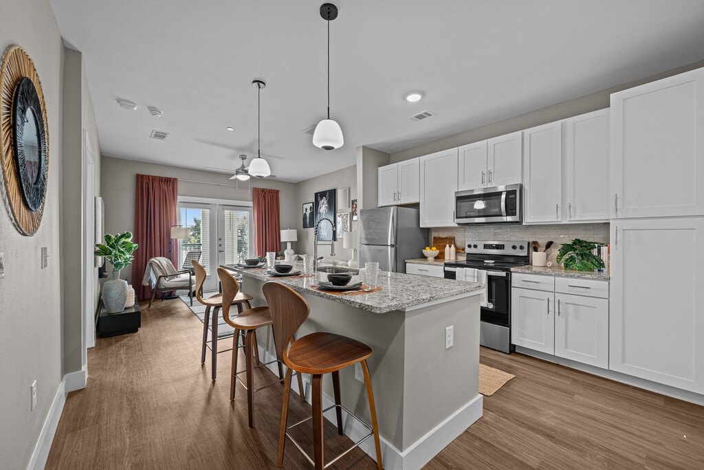 Envision living in an apartment community infused with our vibrant social hub and stunning cowork space. Here you can focus, socialize, and unwind. It is a place where work feels like home and each resident finds community right at their doorstep. Find a home that complements your way of life with selections of one, two, and three bedroom homes. Each floorplan features granite countertops, stainless steel appliances, upgraded cabinetry, wood vinyl plank flooring, and full size washer & dryers.