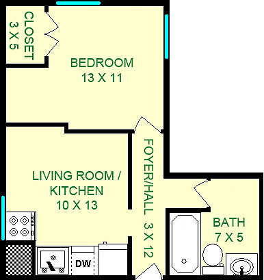 Tesla - Floorplan 5 Apartment Unit: CV-205Apartment Model: Tesla$690Studio, 1 Bath, 330 sq ftAvailable August 1, 2026![]()