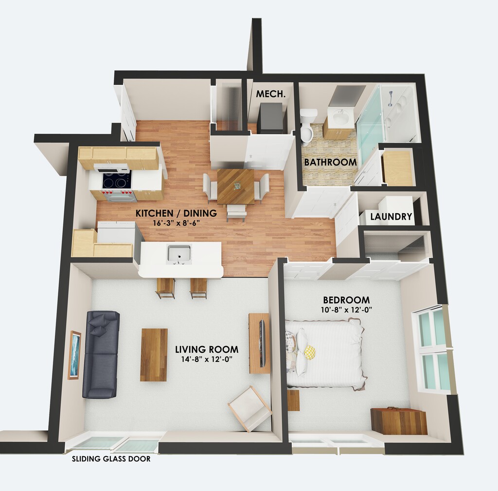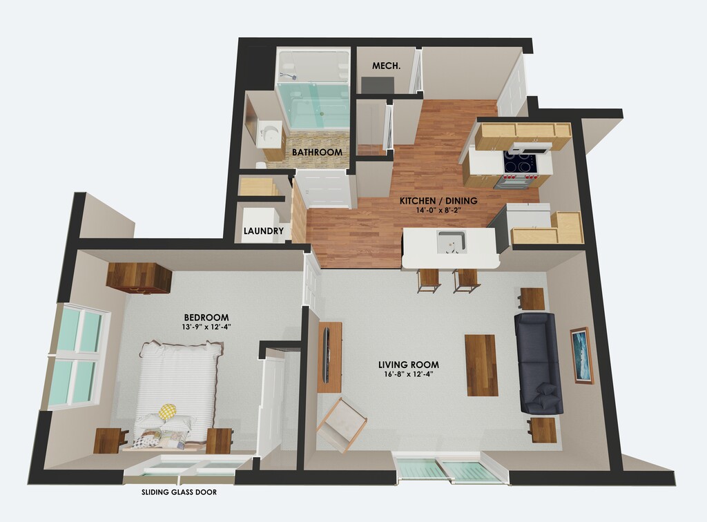 1 Bed, 1 Bath, 725 sq ftAvailable NowModel Gallery