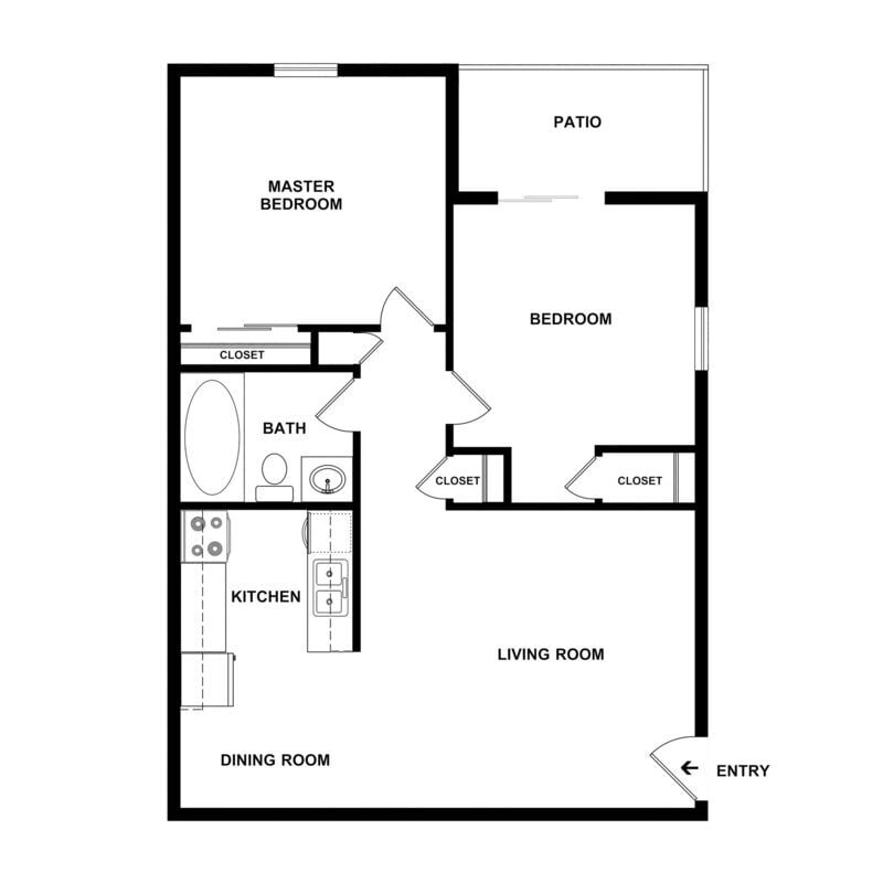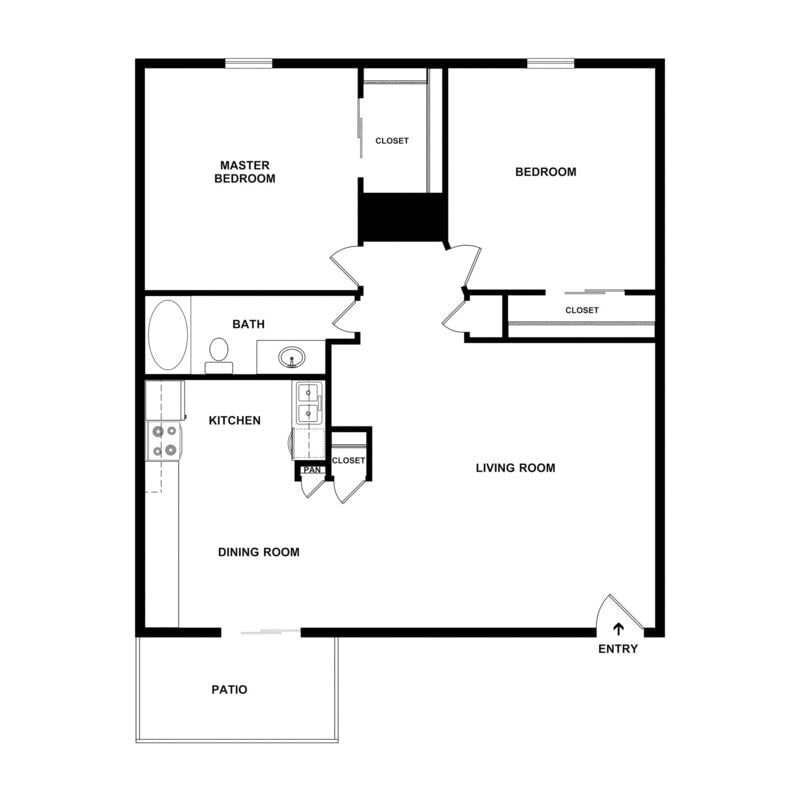 2 Beds, 1 Bath, 840 sq ftAvailable NowModel Gallery
