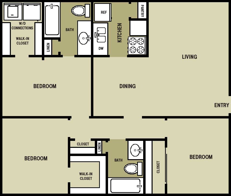 2 Bedroom 2 Bathroom - Floorplan 11 Apartment Unit: 310Apartment Model: 2 Bedroom 2 Bathroom$1,1202 Bedroom, 2 Bath, 876 sq ftAvailable Now2 Bedroom 1.5 Bathroom