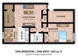 One Bedroom - 659 sqft - Floorplan 1 ![]()