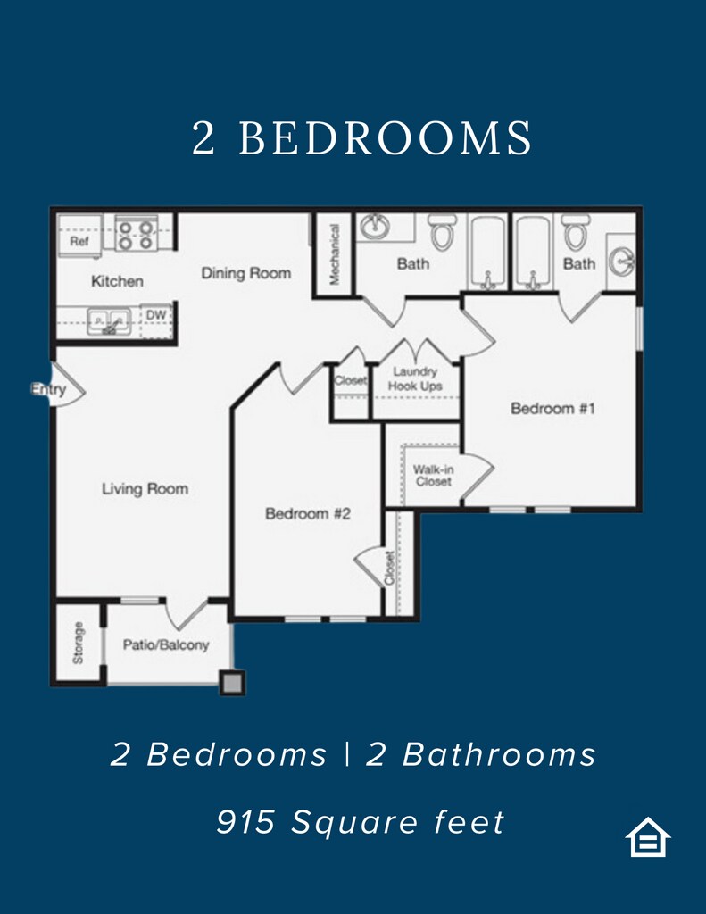 Apartment Model: 2 Bedroom 2 Bathroom2 Bedroom, 2 Bath, 915 sq ftAvailable April 7, 2026FloorplansPhotos![]()