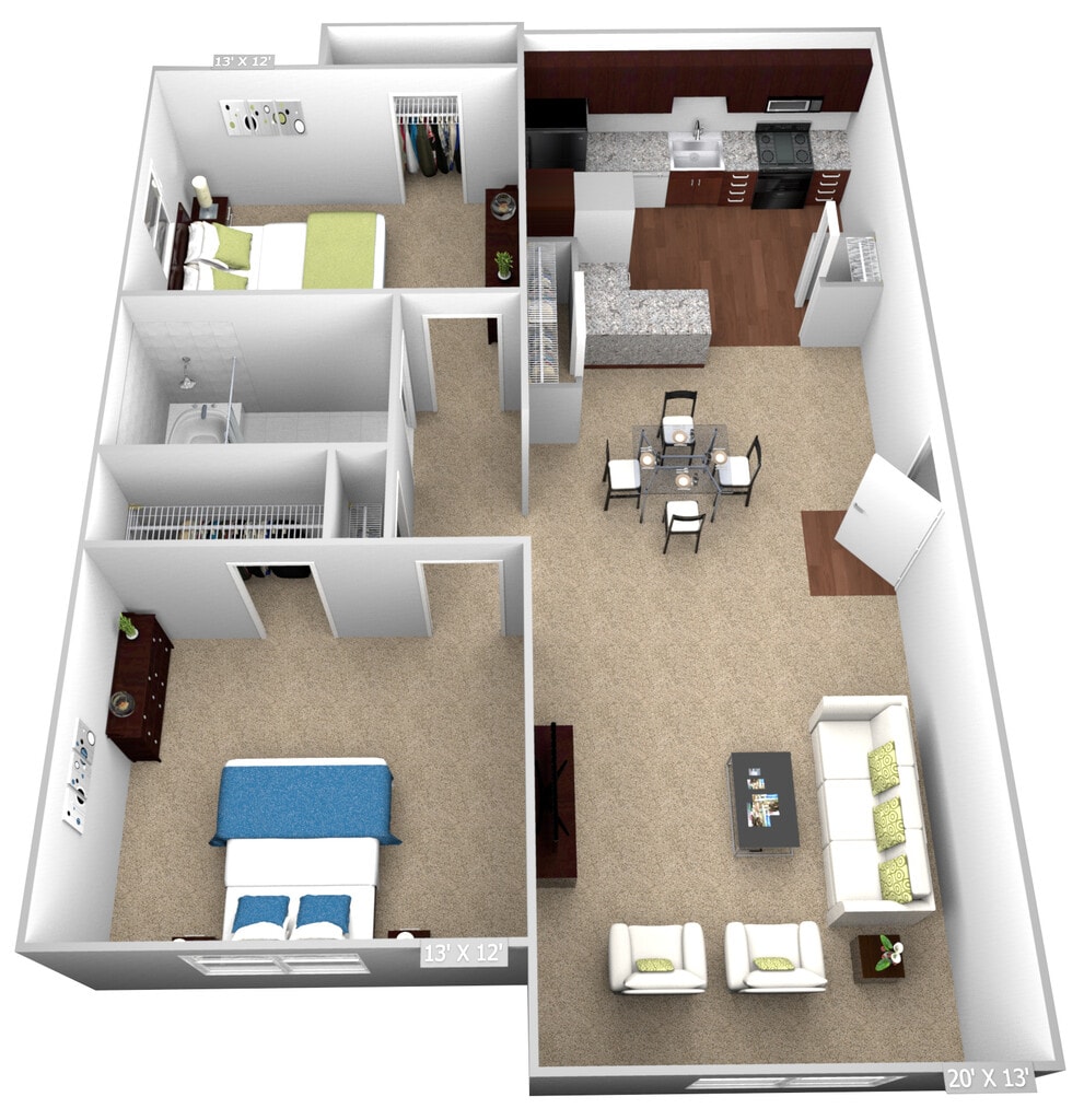 Apartment Model: 2 BedroomFrom $1,2222 Bedroom, 1 Bath, 750 sq ftUnavailable![]() - 2 Bedroom - Floorplan 1