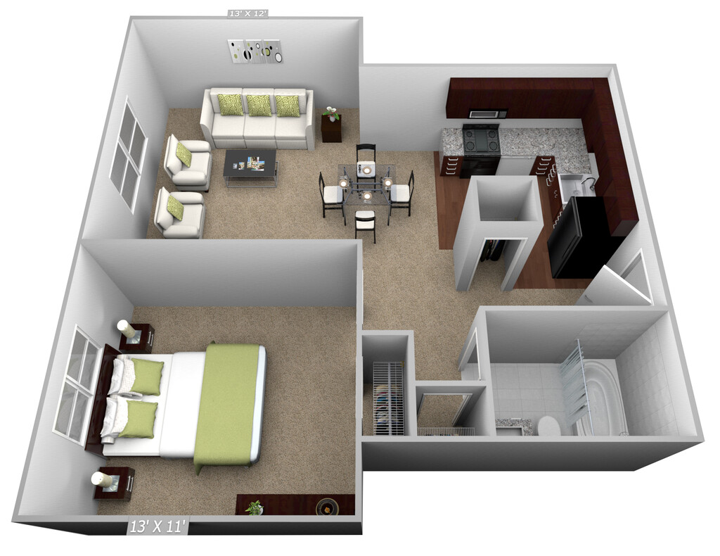 Apartment Model: 1 BedroomFrom $1,1451 Bedroom, 1 Bath, 550 sq ftUnavailable![]() - 1 Bedroom - Floorplan 1