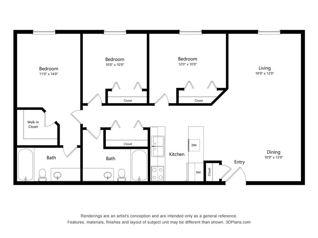 Availability Date Unit Sq Ft Call for Availability Three Bedroom 1224-1400 sq ft Model Amenities and Features