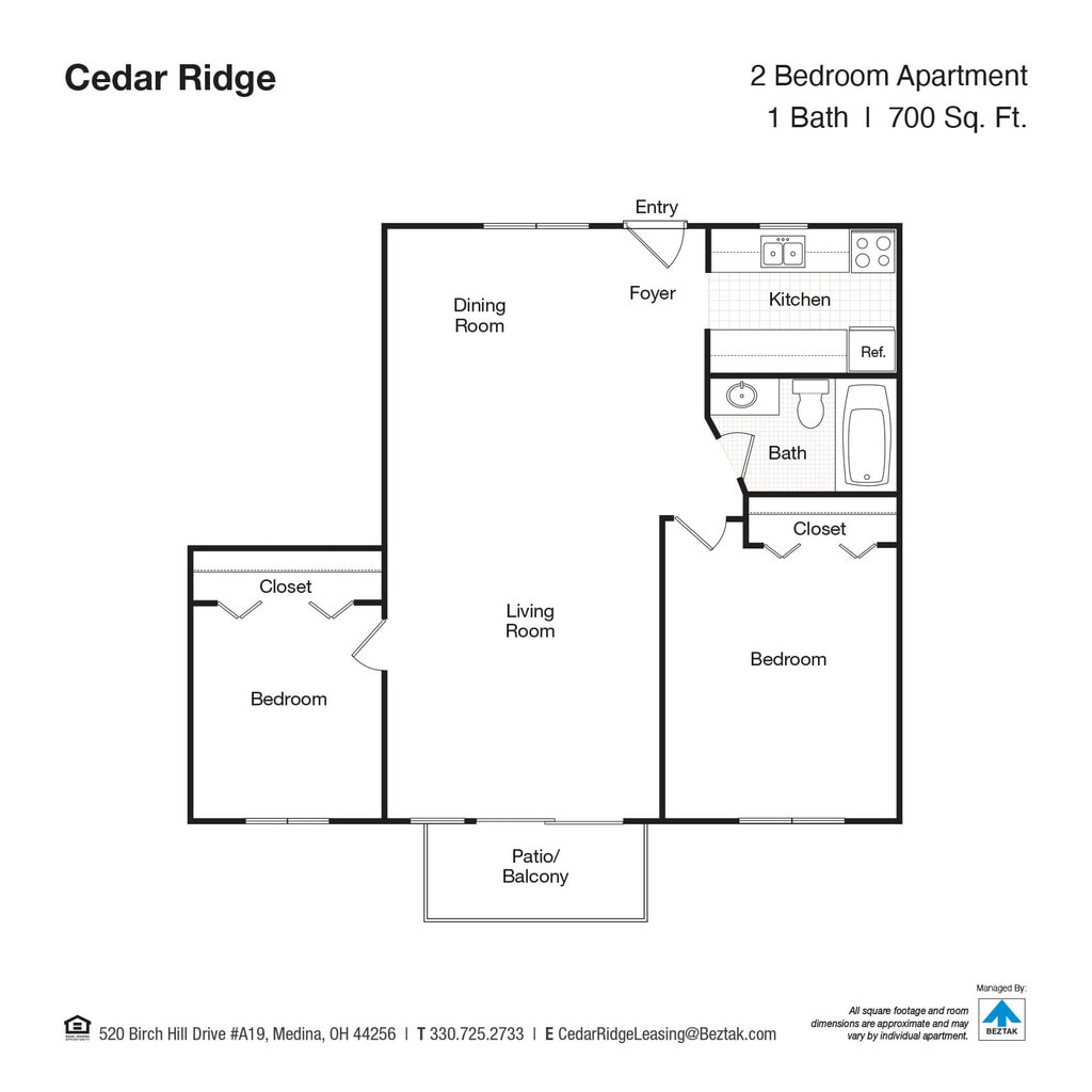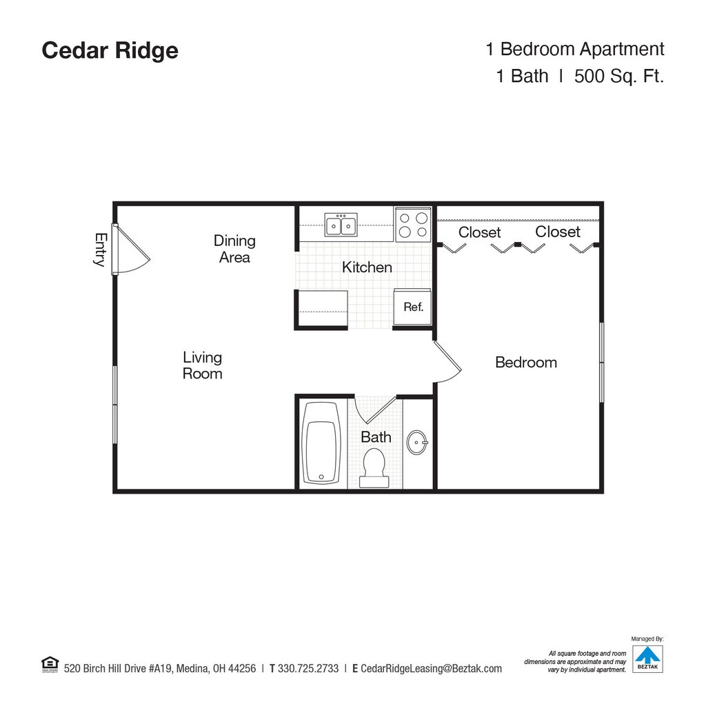 Welcome home to Cedar Ridge Apartments, a peaceful apartment community based in Medina, Ohio. Each of our apartments are well-appointed with the must-have comforts all found within reach. Included in each home is a high-speed internet access, a fully equipped kitchen, breakfast bar and private entrances. Call us today to schedule your personalized tour.