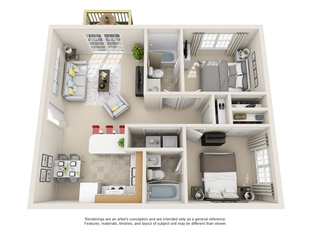 2 Beds, 2 Baths, 884 sq ftAvailable NowModel Gallery