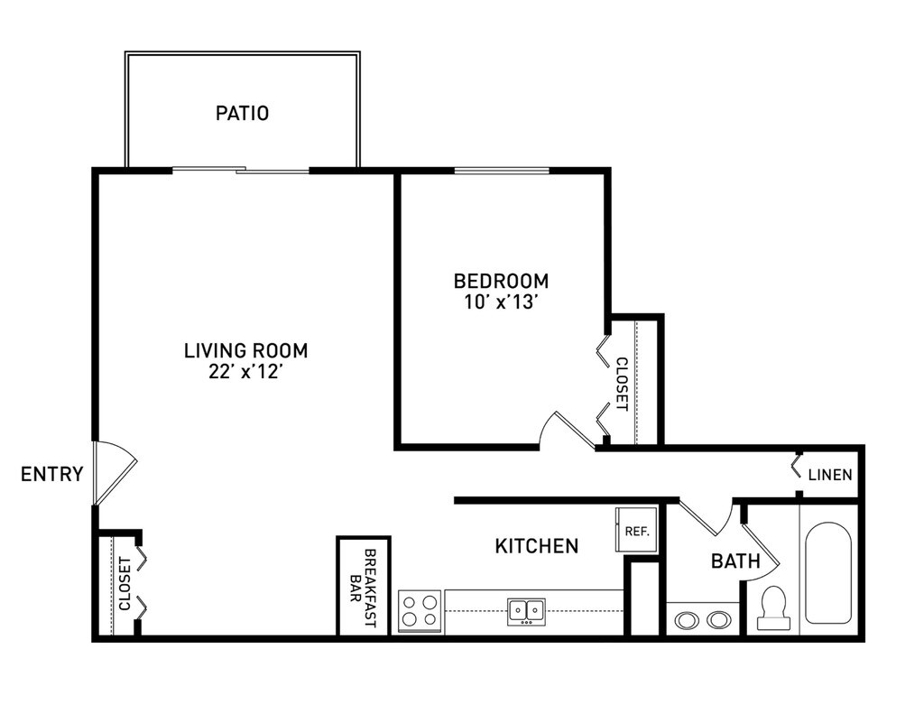 Apartment Model: 1 Bed, 1 Bath1 Bedroom, 1 Bath, 407-654 sq ftUnavailable![]()