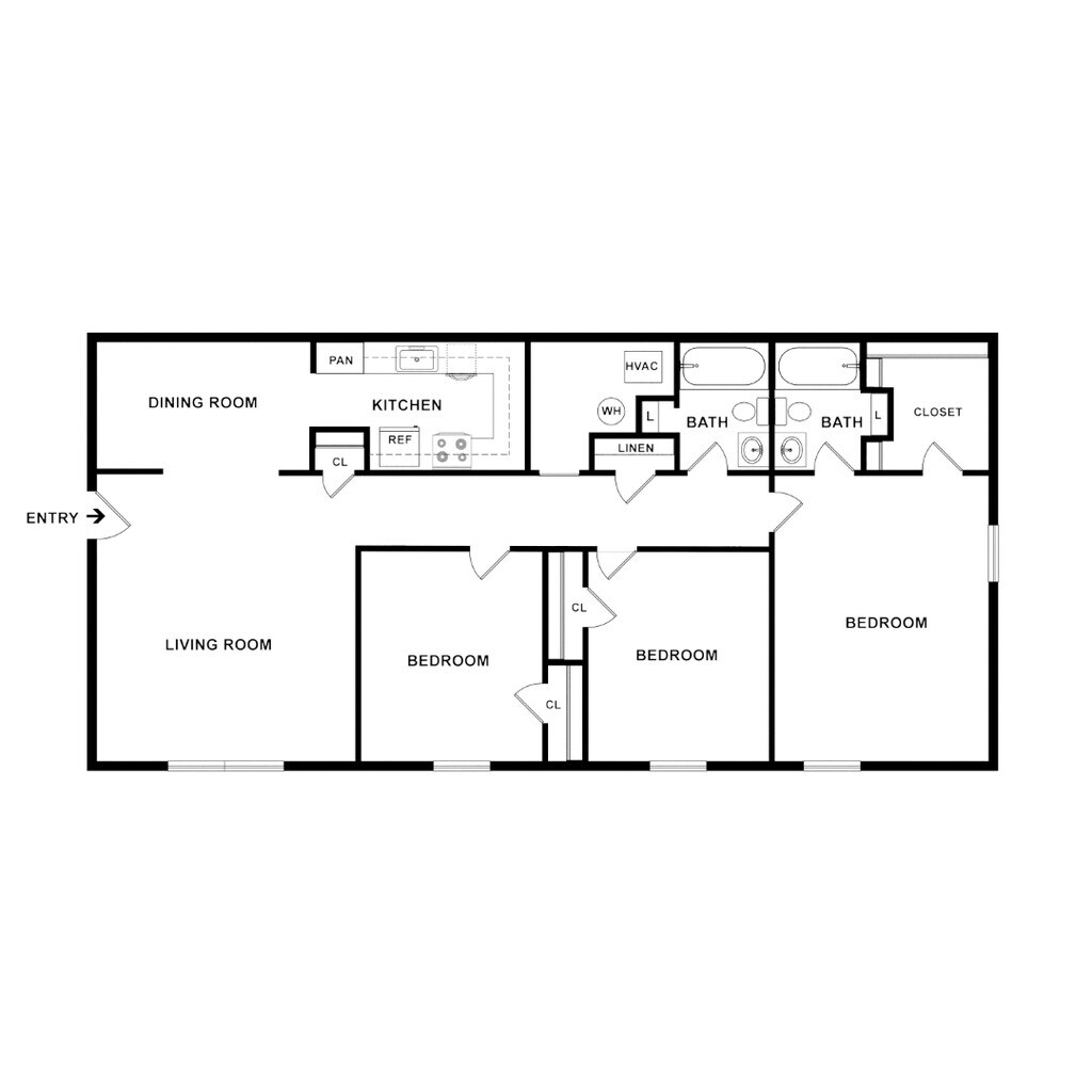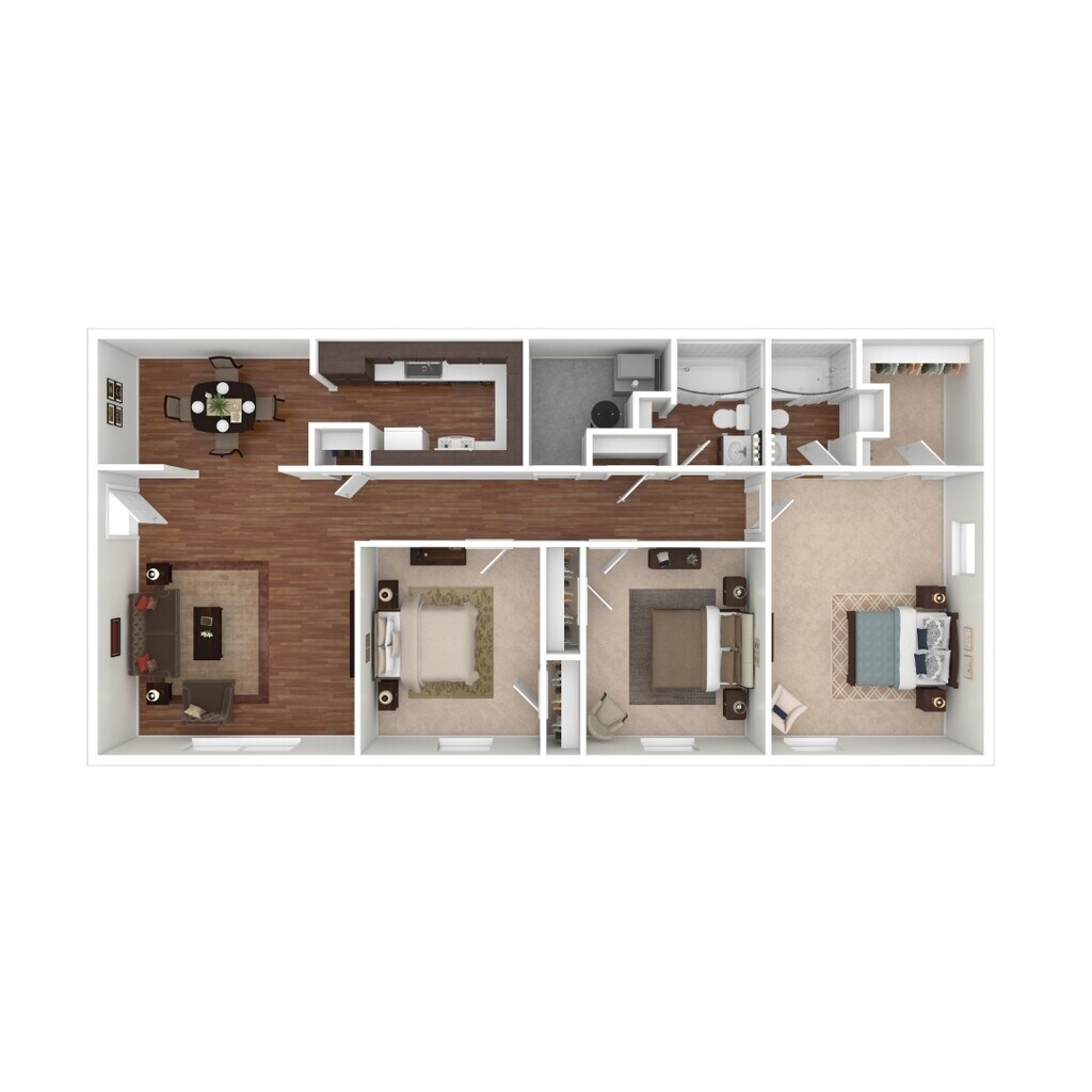 3 Bedroom Apartment - Floorplan 3 3 Bedroom Townhome