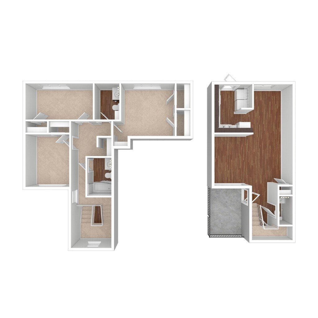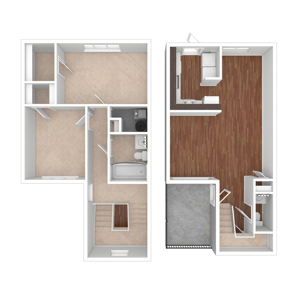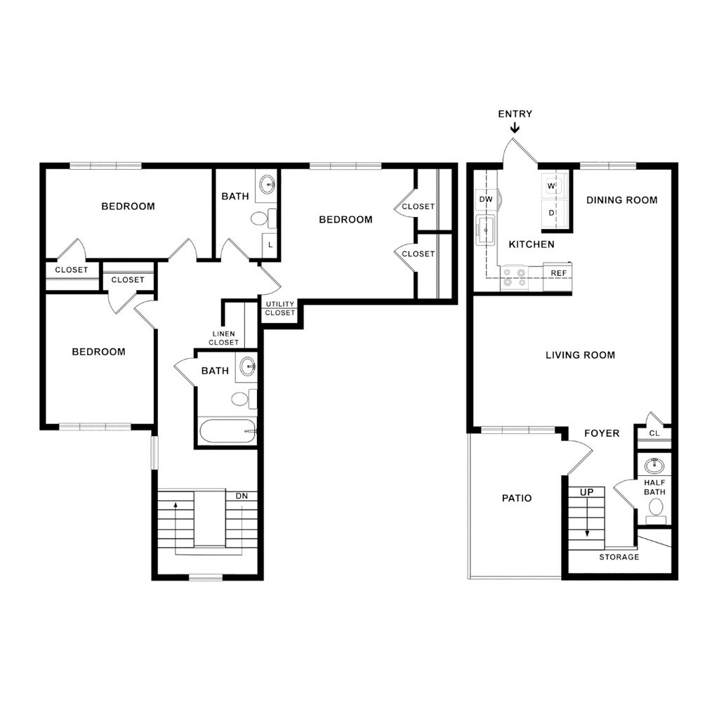 2 Bedroom Townhome - Floorplan 4 3 Bedrooms