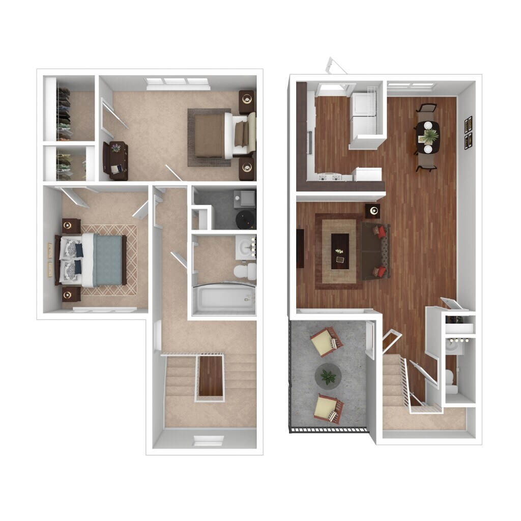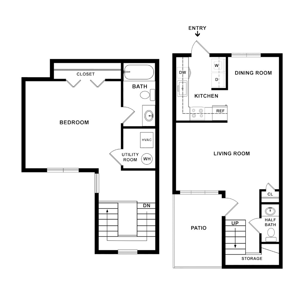1 Bedroom Townhome - Floorplan 3 2 Bedrooms