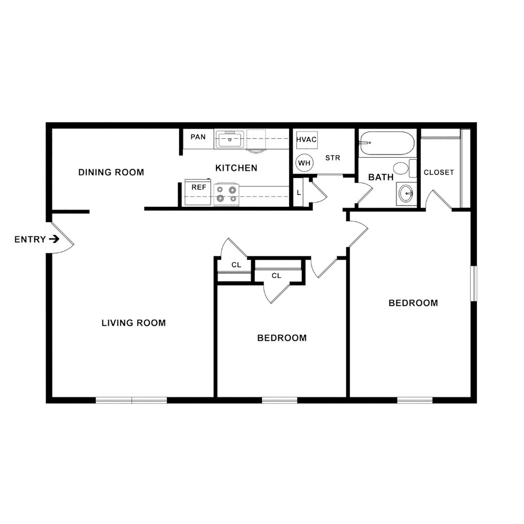 2 Bedroom Apartment - Floorplan 3 2 Bedroom Townhome