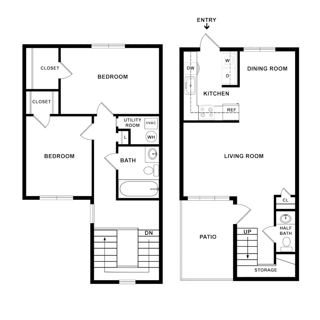 2 Bedroom Townhome - Floorplan 1 ![]()
