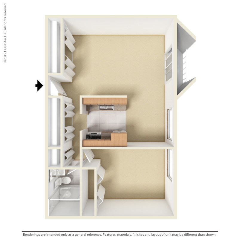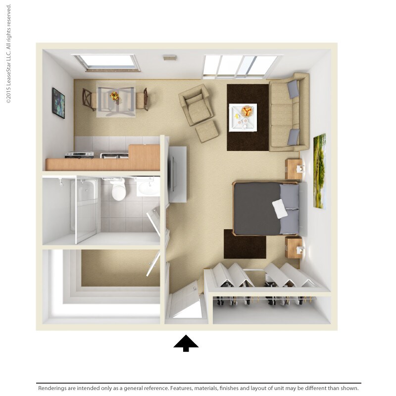 Studio, 1 Bath, 418-508 sq ftTotal Monthly PriceAvailable NowModel Gallery