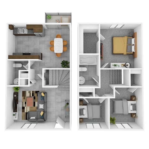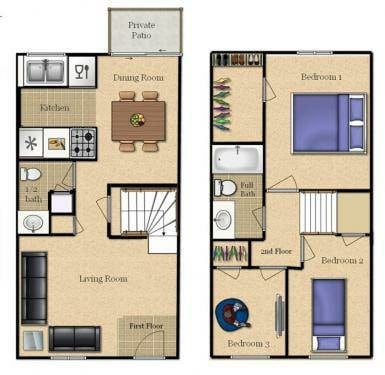 3 Beds, 1.5 Baths, 1280 sq ftModel Gallery