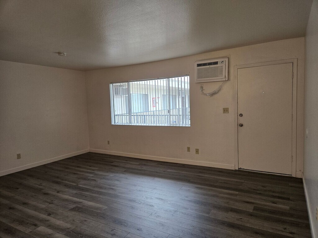 Spacious 1 bedroom, 1 bath downstairs apartment located near Modesto Junior College. This is a remodeled unit, with an open floor plan, a walk in closet, electric stove, and laminate flooring throughout. This unit also includes 1 assigned parking space, onsite laundry, wall heater and a window A/C. *W/S/G is paid by owner. *NO Pets. Valley Oak does not warrant or guarantee that all listed amenities are present as advertised. Valley Oak in good faith has listed the amenities, but due to human error and the transient nature of amenities, applicants are encouraged to confirm amenities upon inspection of the property.