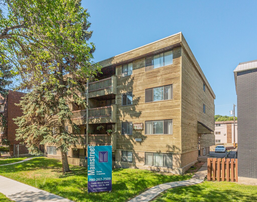 The Oliver and Unity Square area’s best apartment rentals are the pet-friendly, affordable suites at Mainstreet’s Cedarwood Arms Apartments. This beautiful building with wood exterior and cozy, private balconies overlooking a peaceful street are a great place to call home. Cable-ready and internet-ready, these suites also feature both classic hardwood and high-grain laminate floors, and many suites have dishwashers available. To keep moving simple, we also provide your fridge, stove, window coverings, and provide onsite laundry facilities for convenience. We’ll also provide peace-of-mind with our secured building entry and regular security patrols. This is also a low-density building, meaning fewer neighbours, less noise, and more space to yourself. Due to the combination of location and affordability, this is a very popular building which rarely has vacancies. To secure your spot, apply online now! Location Details: Apartments for rent in Oliver / Unity Square area don’t get better than Mainstreet’s Cedarwood Arms Apartments. You’re only a four-minute walk from shopping at Unity Square (formerly known as Oliver Square), and there are lots of great schools in the area. We offer onsite parking, but with a WalkScore of 76 it’s easy to leave the car behind. - Six-minute walk to grocery shopping at Loblaw’s City Market - Many great schools within a 7-minute drive - Great dining and shopping are only a six-minute walk away at Unity Square - Eight-minute walk to gym facilities at Goodlife Fitness Edmonton Brewery District You won’t find a better building or a better deal, so apply online now!