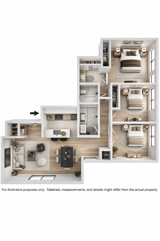 3 Beds, 2 Baths, 1000 sq ftModel Gallery