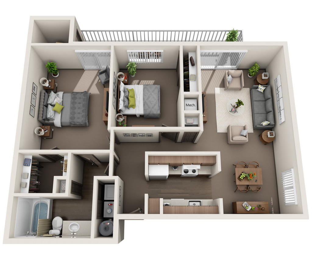 2 Beds, 1 Bath, 980 sq ftAvailable NowModel Gallery
