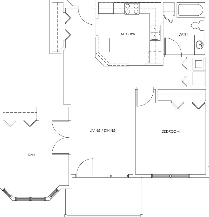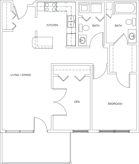Apartment Model: 1 Bedroom 1 Bathroom + DenCall For Rates1 Bedroom, 1 Bath, 953 sq ftUnavailable![]() - 1 Bedroom 1 Bathroom + Den - Floorplan 1