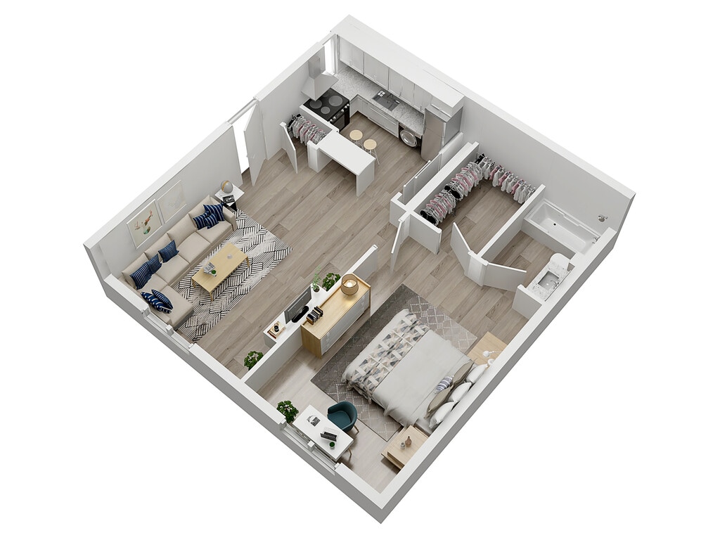 1 Bed, 1 Bath, 500 sq ftModel Gallery