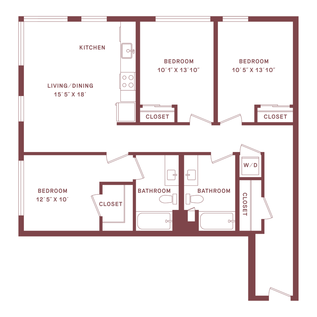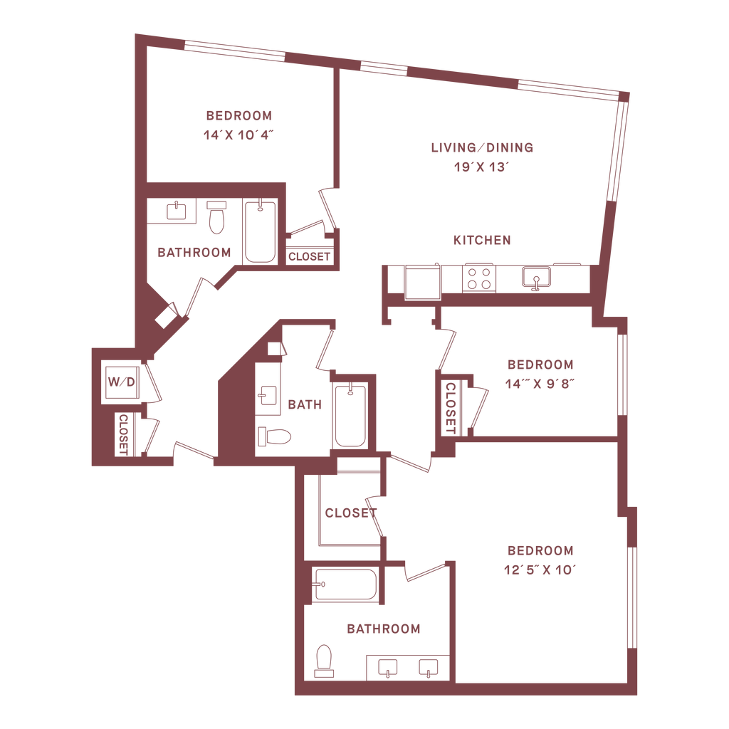 3 Beds, 2 Baths, 1430 sq ftLargest 3 BedroomThis is the largest 3 Bedroom at this PropertyModel Gallery