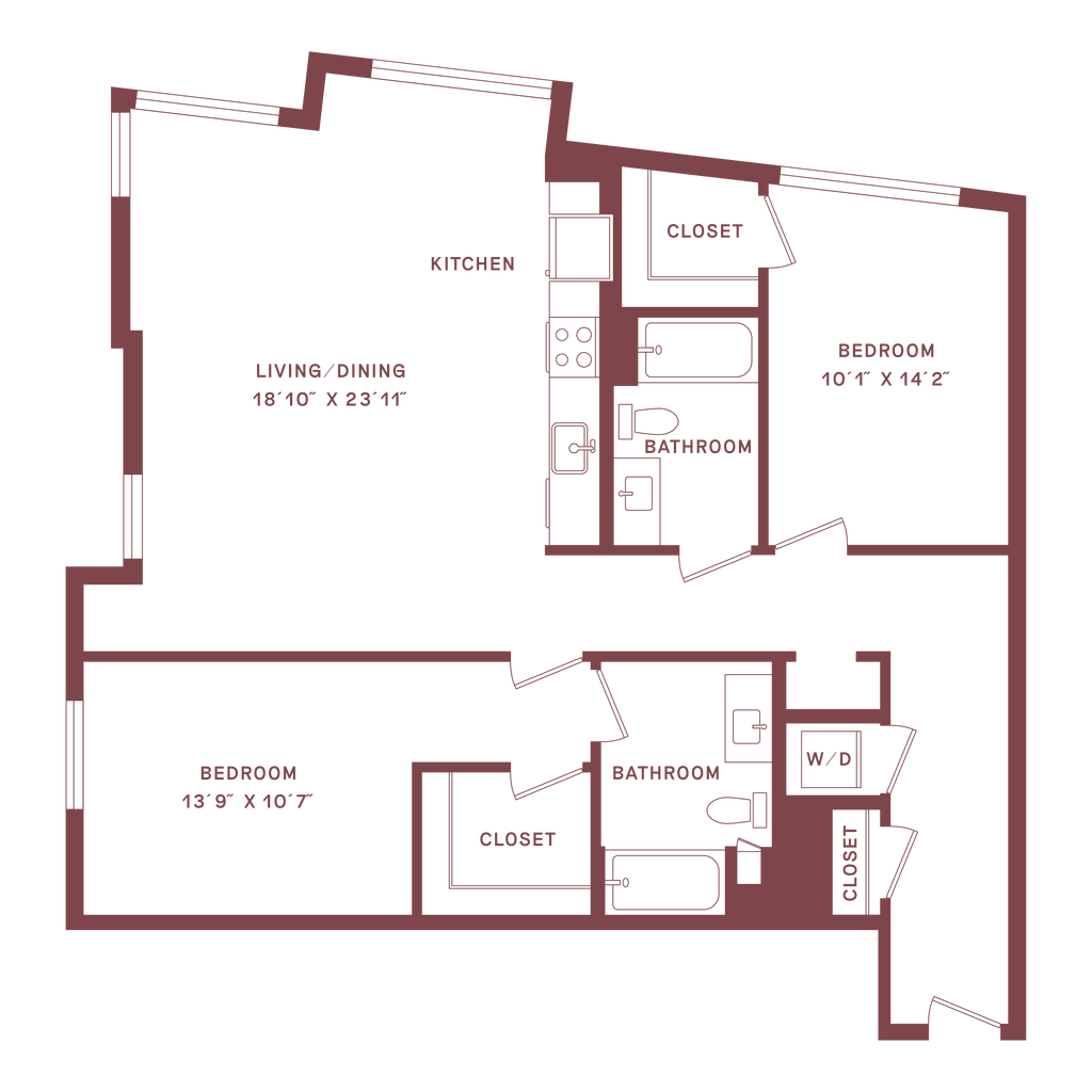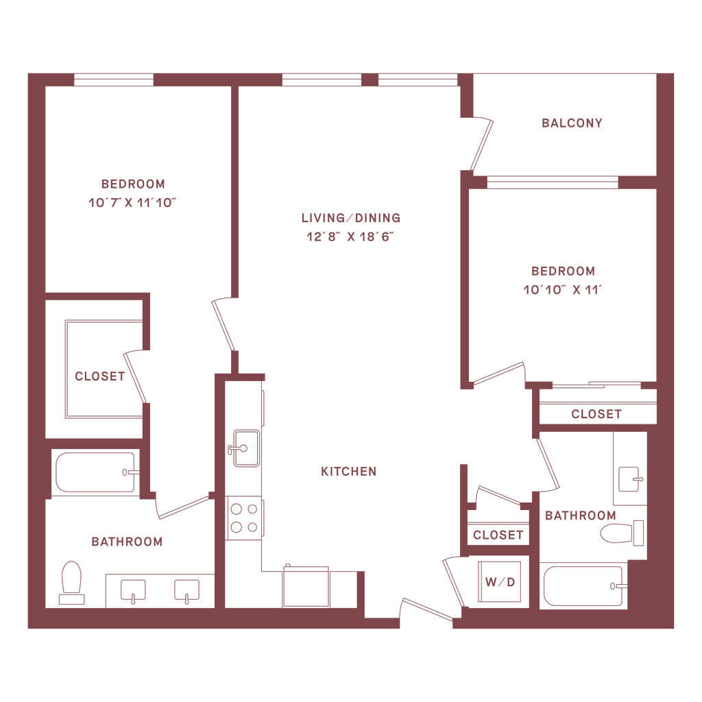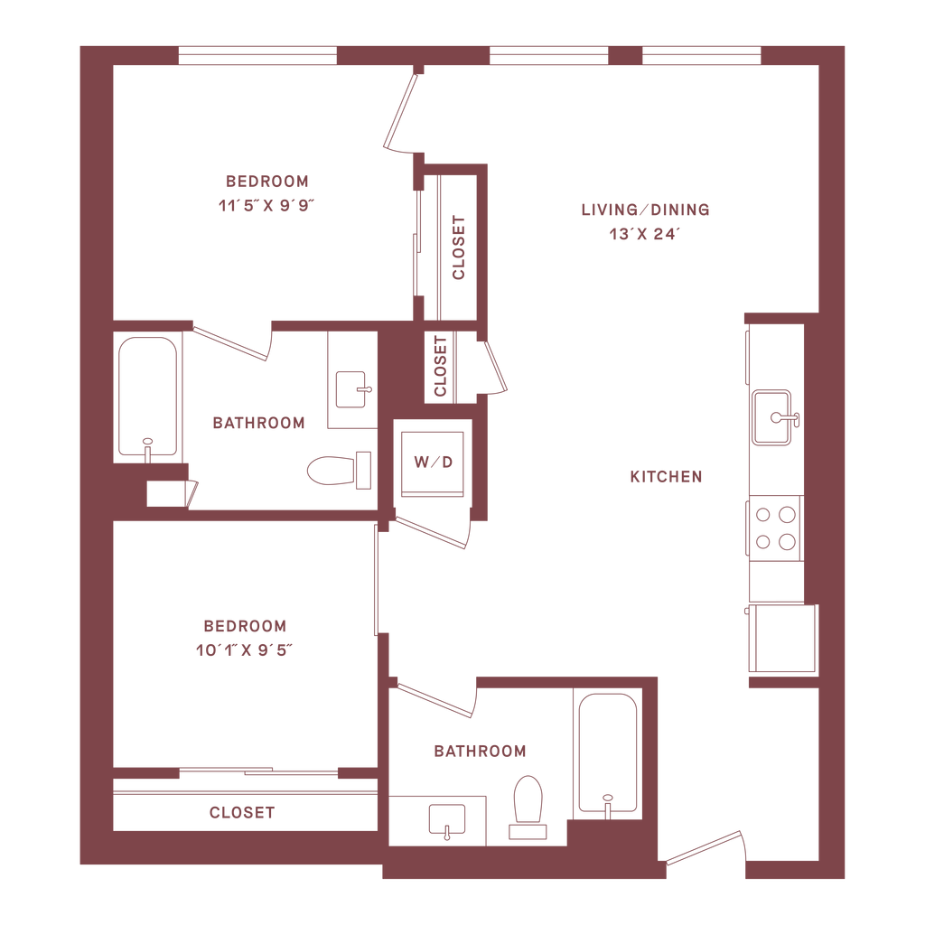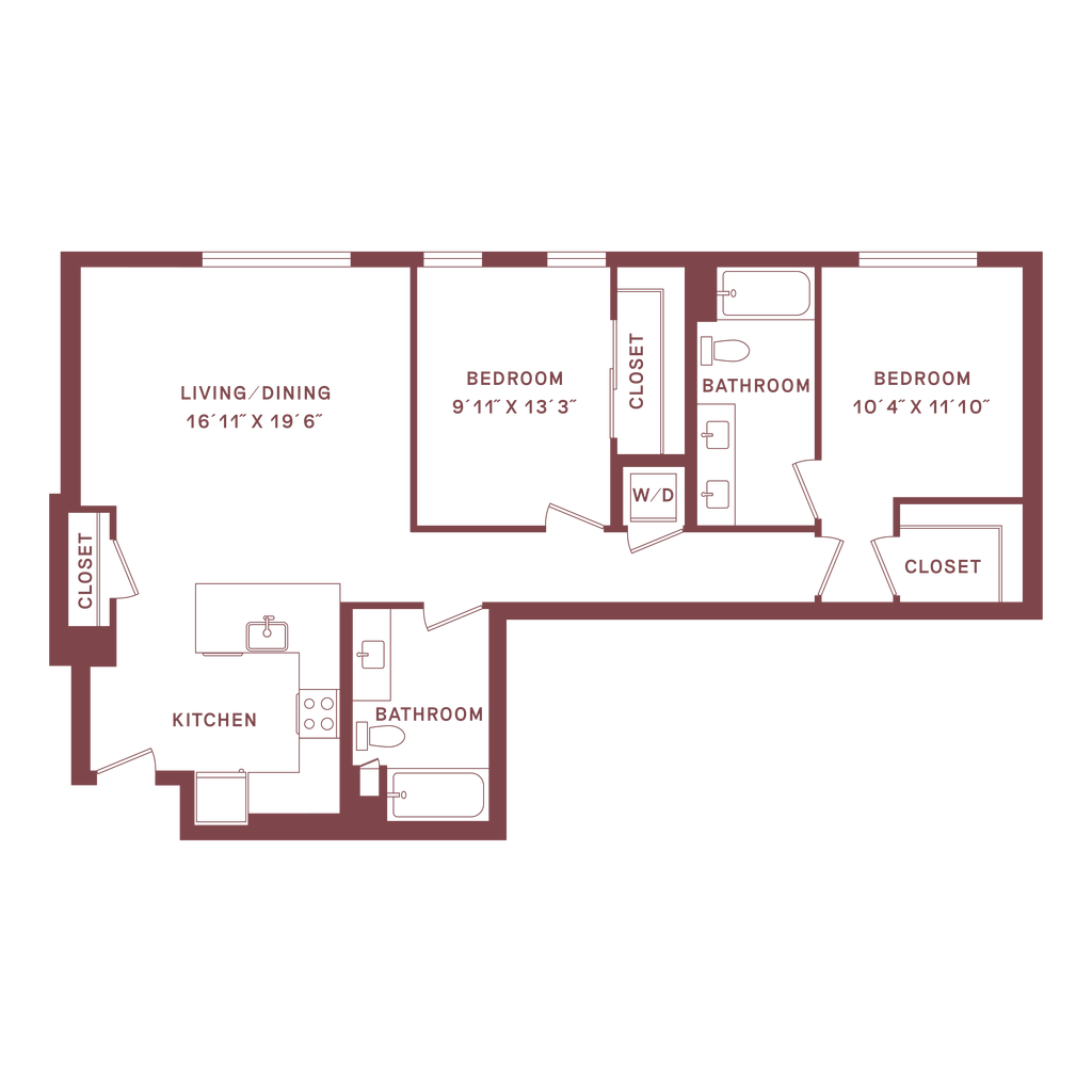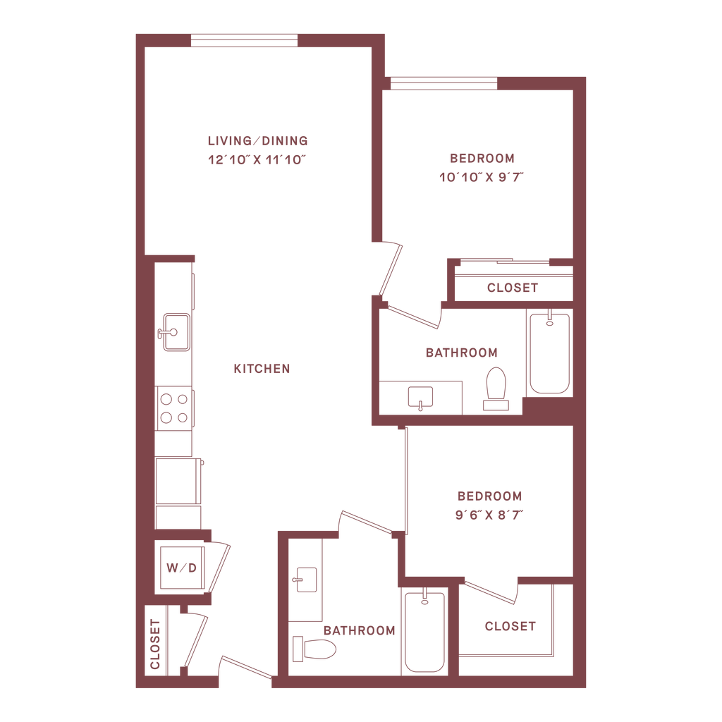 2 Beds, 2.5 Baths, 1330 sq ftLargest 2 BedroomThis is the largest 2 Bedroom at this PropertyModel Gallery