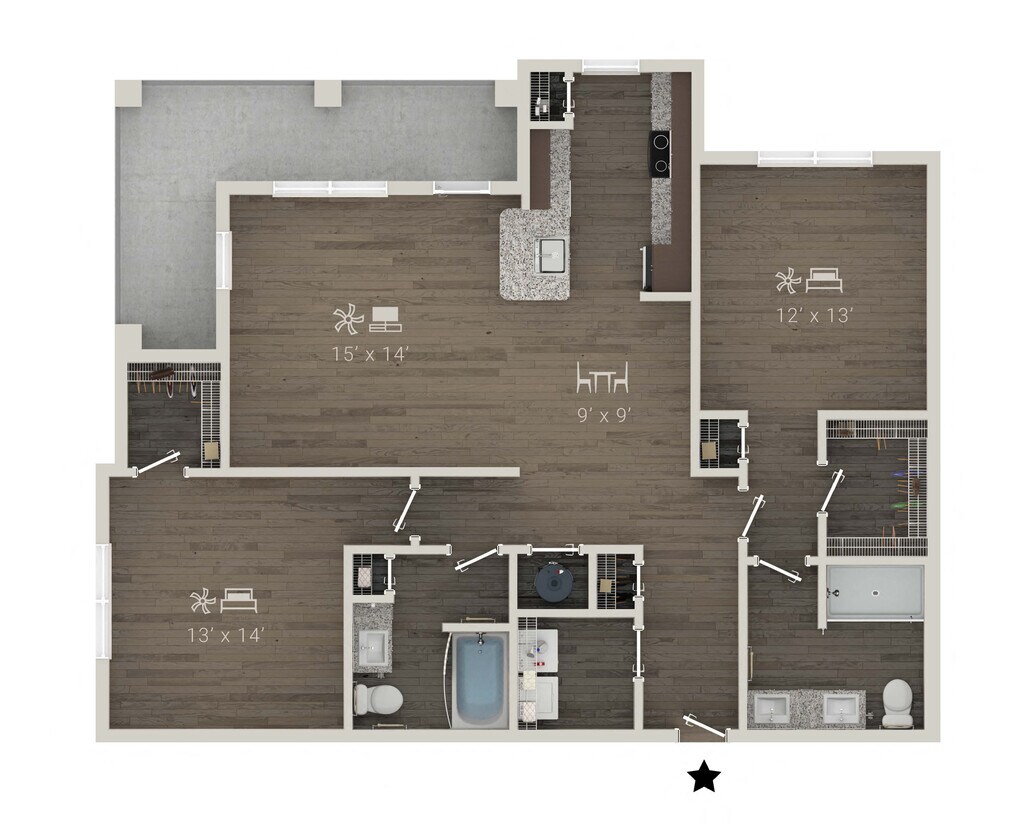 1 Bed, 1 Bath, 852-877 sq ftAvailable NowModel Gallery