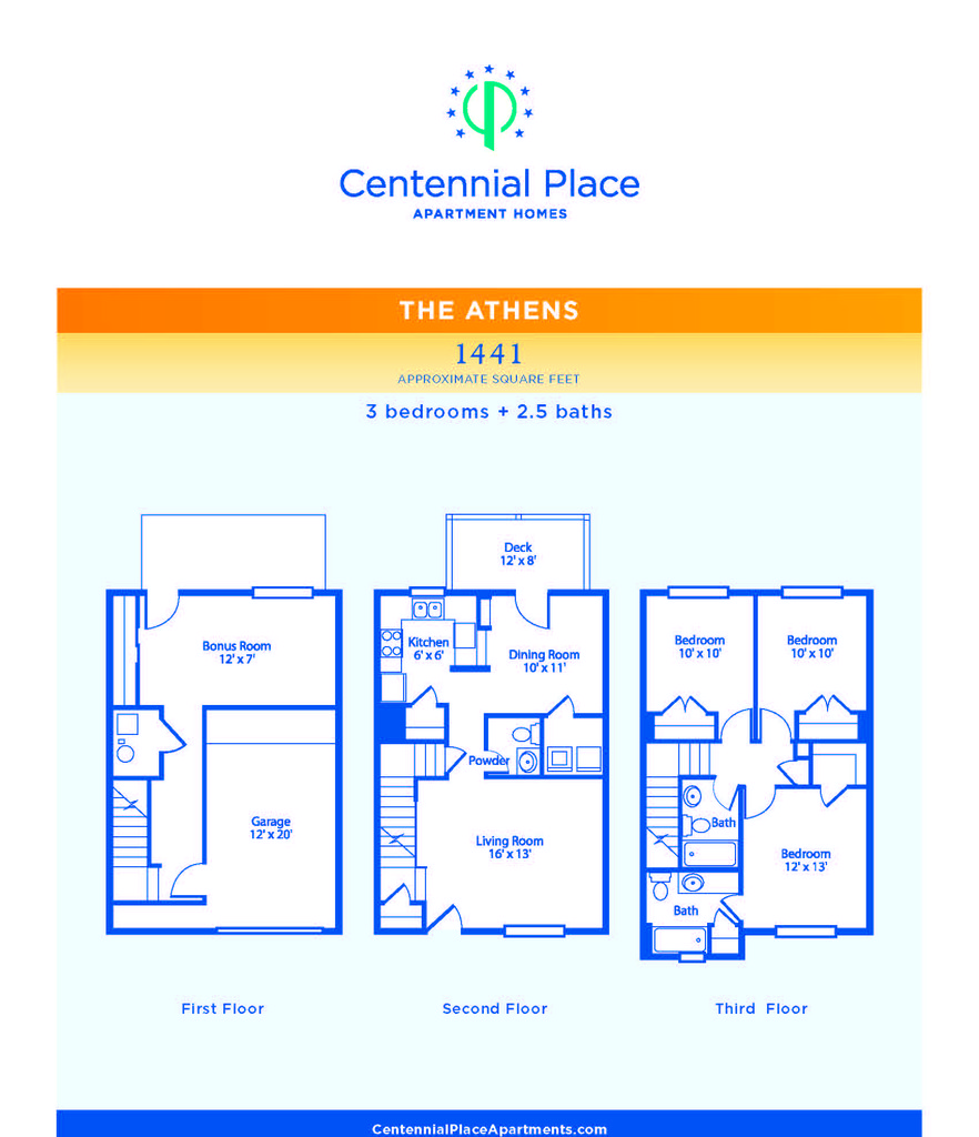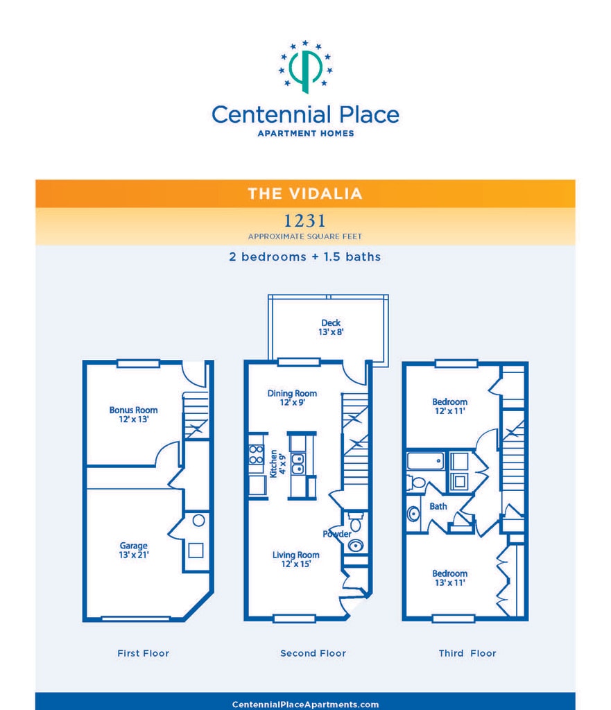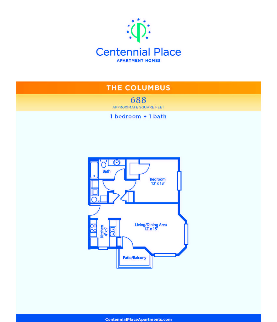 Centennial Place offers 1 to 3 Bedroom apartments starting from $1,318 and having 683–1,866 sq ft. Here is the current pricing and availability: