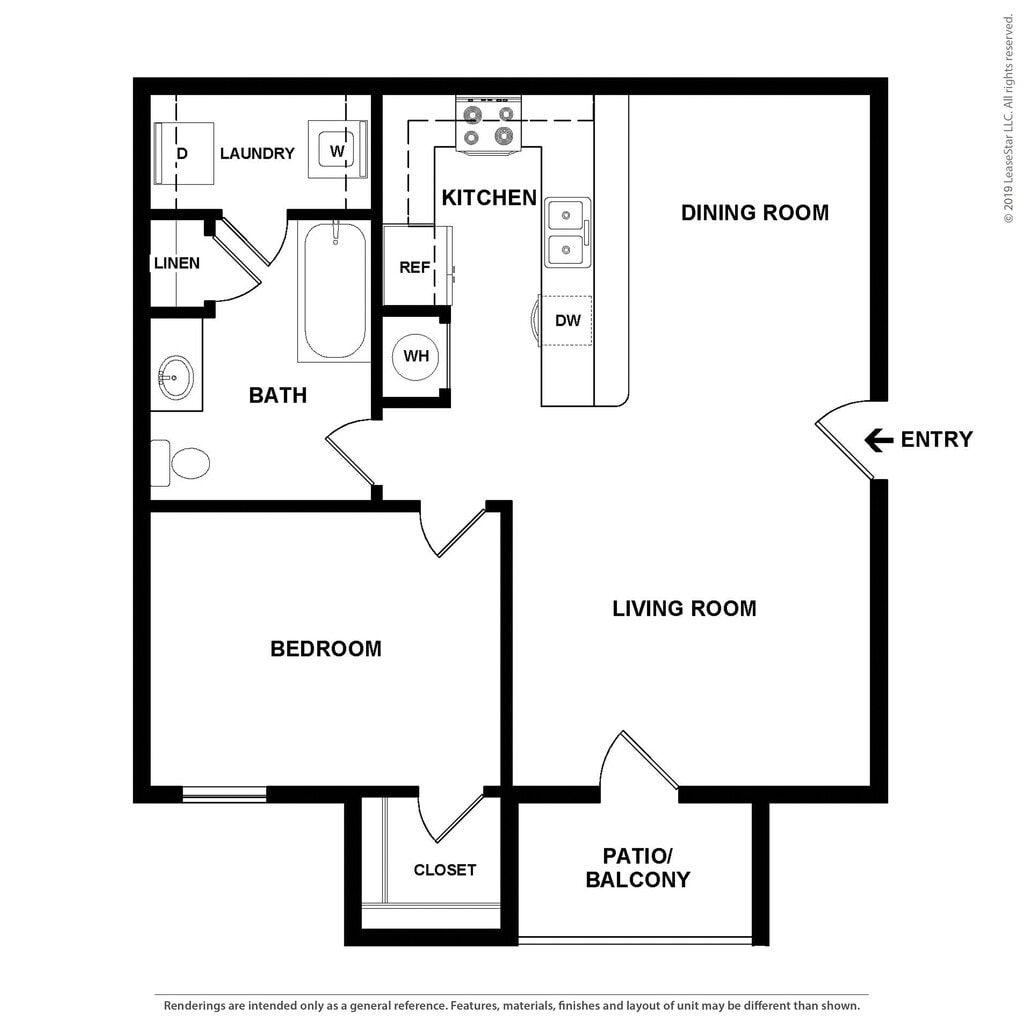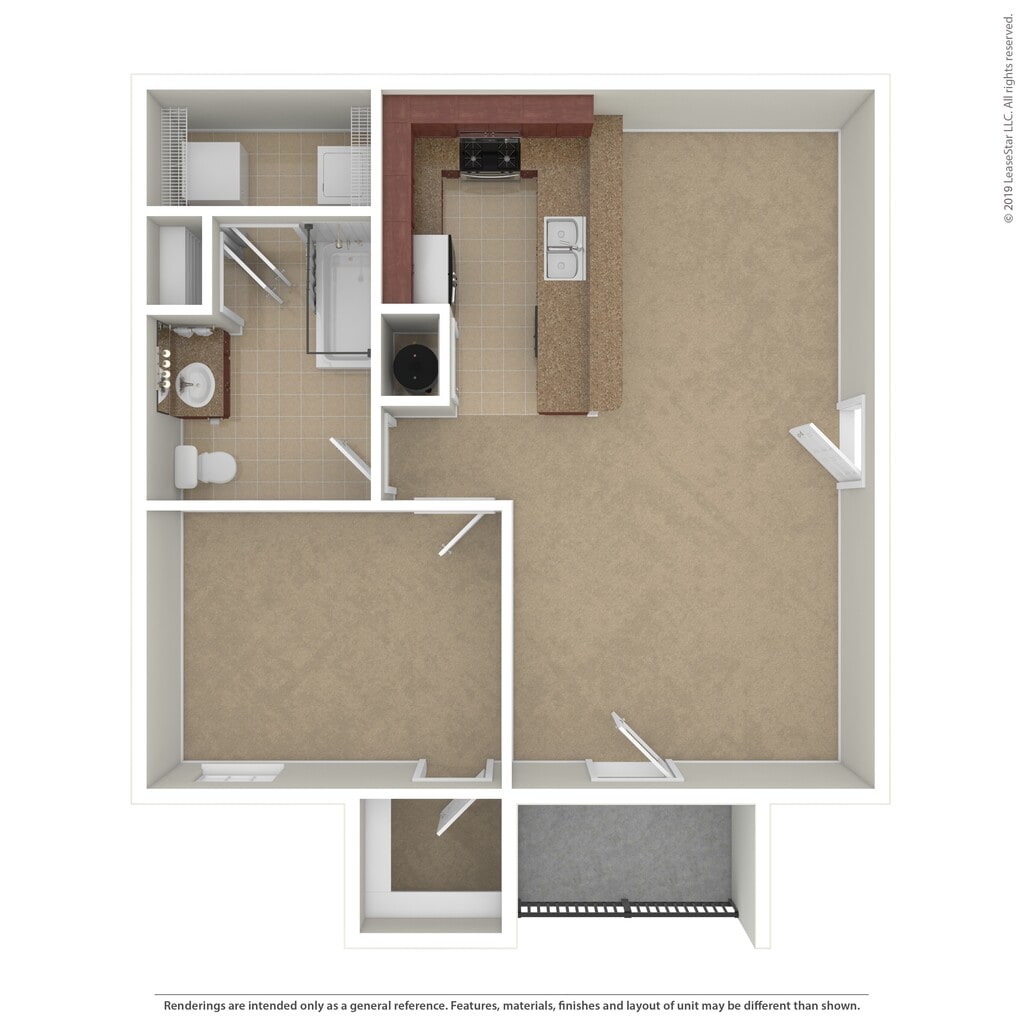 One Bedroom One Bath - Floorplan 1 ![]()