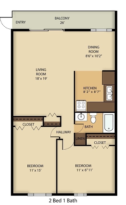 2 Beds, 1 Bath, 1000 sq ftAvailability Details