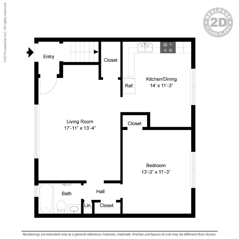 1 Bedroom w/Dining Room - Floorplan 1 ![]()