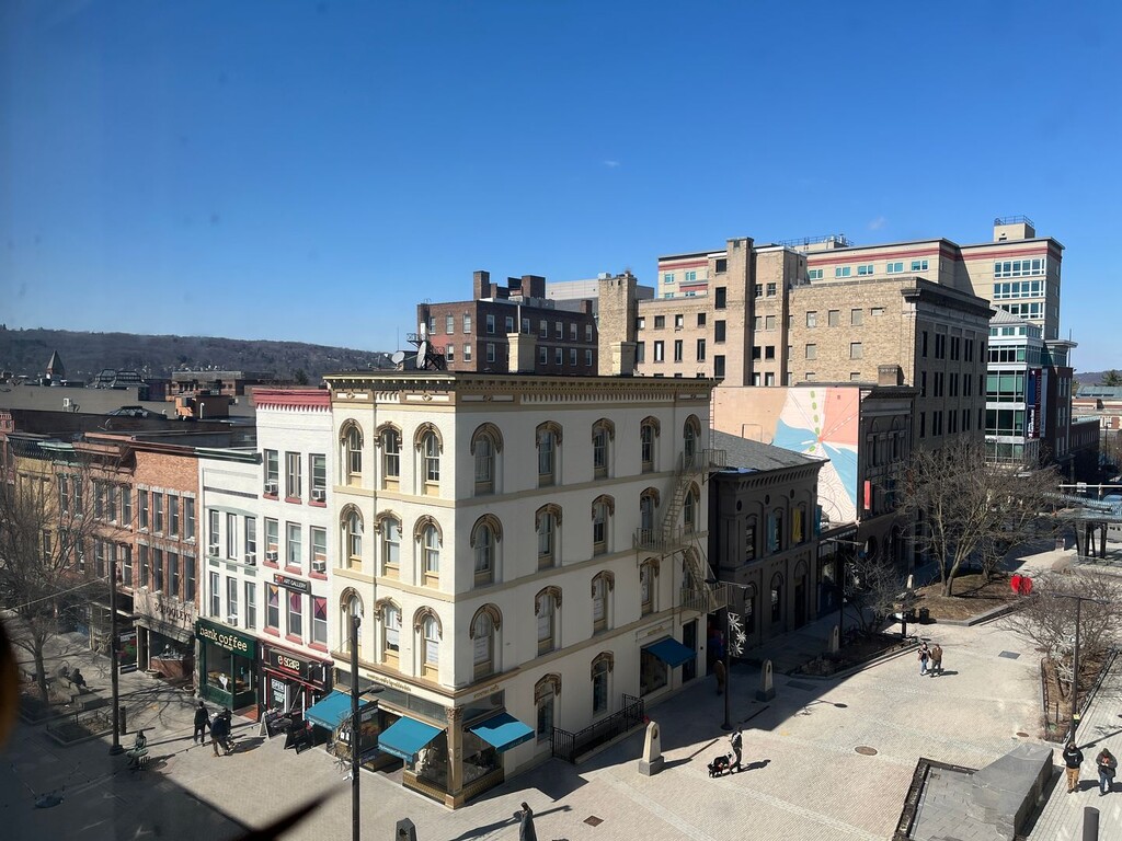Enjoy classic downtown living in this inviting 1-bedroom walk-up at Center Ithaca, perfectly positioned on the vibrant Ithaca Commons. Located within a lively mixed-use building featuring retail shops, dining, and professional offices, this apartment offers a unique opportunity to live right above the energy of downtown Ithaca. Situated on the residential level, this walk-up 1-bedroom provides a cozy and private retreat with easy access to everything the Commons has to offer. Commuting is simple with nearby bus routes serving Cornell University and Ithaca College. Plus, residents enjoy complimentary gym access, adding everyday convenience to your lifestyle. Utilities & Fees: - Tenant pays electric - Annual WiFi fee: $400 - Trash: $175 per person - Parking available at the attached Green Street Parking Garage Professionally managed by Travis Hyde Properties, this 1-bedroom walk-up is perfect for those seeking charm, convenience, and unbeatable downtown access. *Travis Hyde Professionally cleans and turns every apartment before a new leases begins.