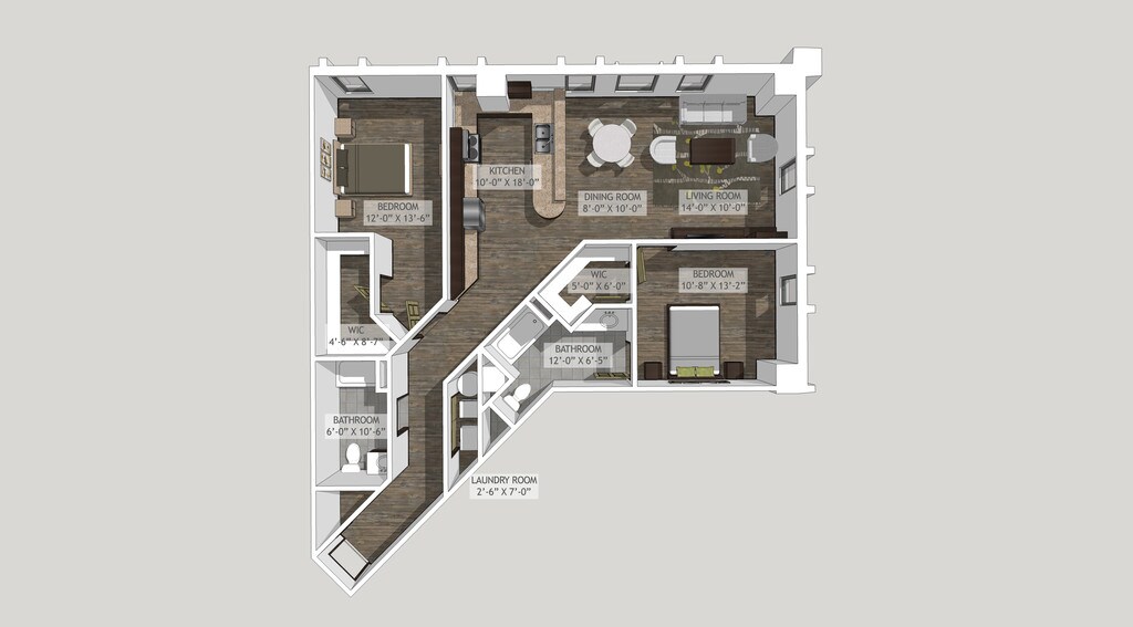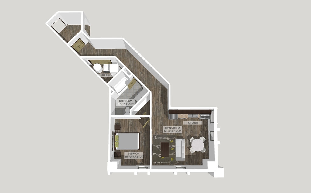 1 Bed, 1 Bath, 865 sq ftModel Gallery