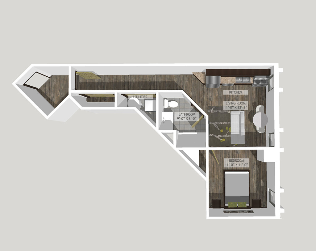 Unit F - Floorplan 1 Apartment Unit: 1205Apartment Model: Unit F$1,2501 Bedroom, 1 Bath, 805 sq ftAvailable NowUnit C