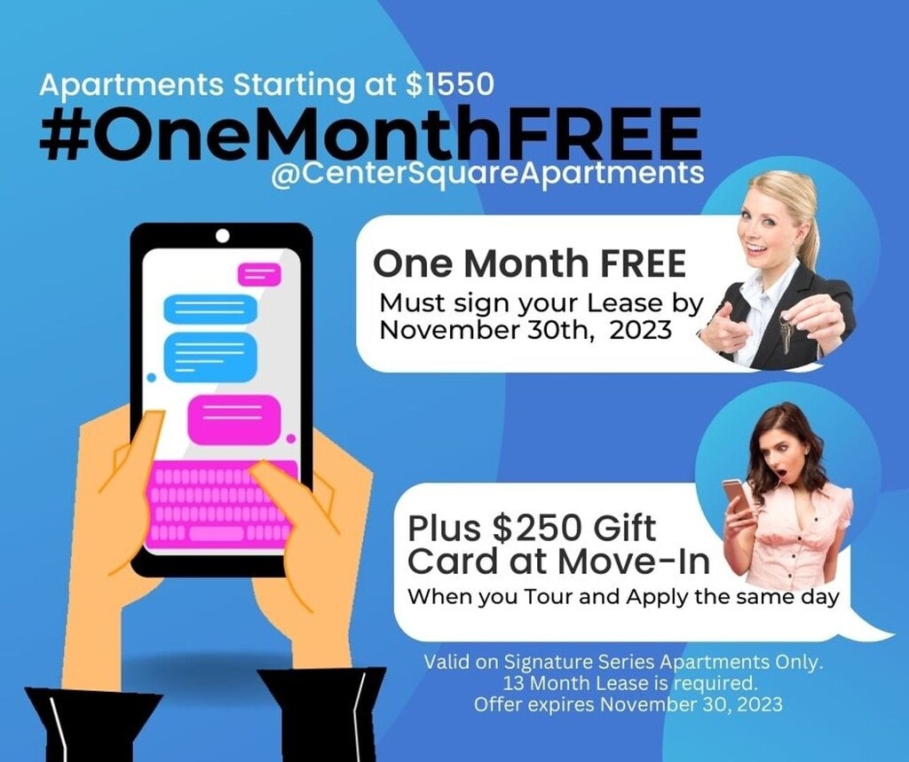 Studio to 1 Bedroom Apartments at Center Square Apartments currently range from $1,625 to $1,875